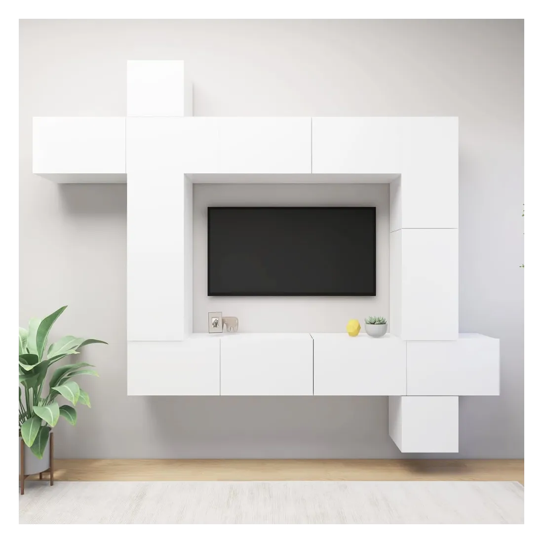 Ce meuble TV, doté d'un design moderne et d'un grand espace de rangement, devient un point de mire de votre salon. Cet ensemble de meuble TV suspendu est fabriqué en bois d'ingénierie, ce qui le rend robuste et durable. L'ensemble est fixé au mur, ce qui en fait un supplément intemporel à votre maison. L’ensemble dispose de plusieurs compartiments qui en font un endroit idéal pour stocker tous vos magazines, DVD ou autres articles. Cet ensemble de meuble Hifi est facile à nettoyer avec un chiffon humide.