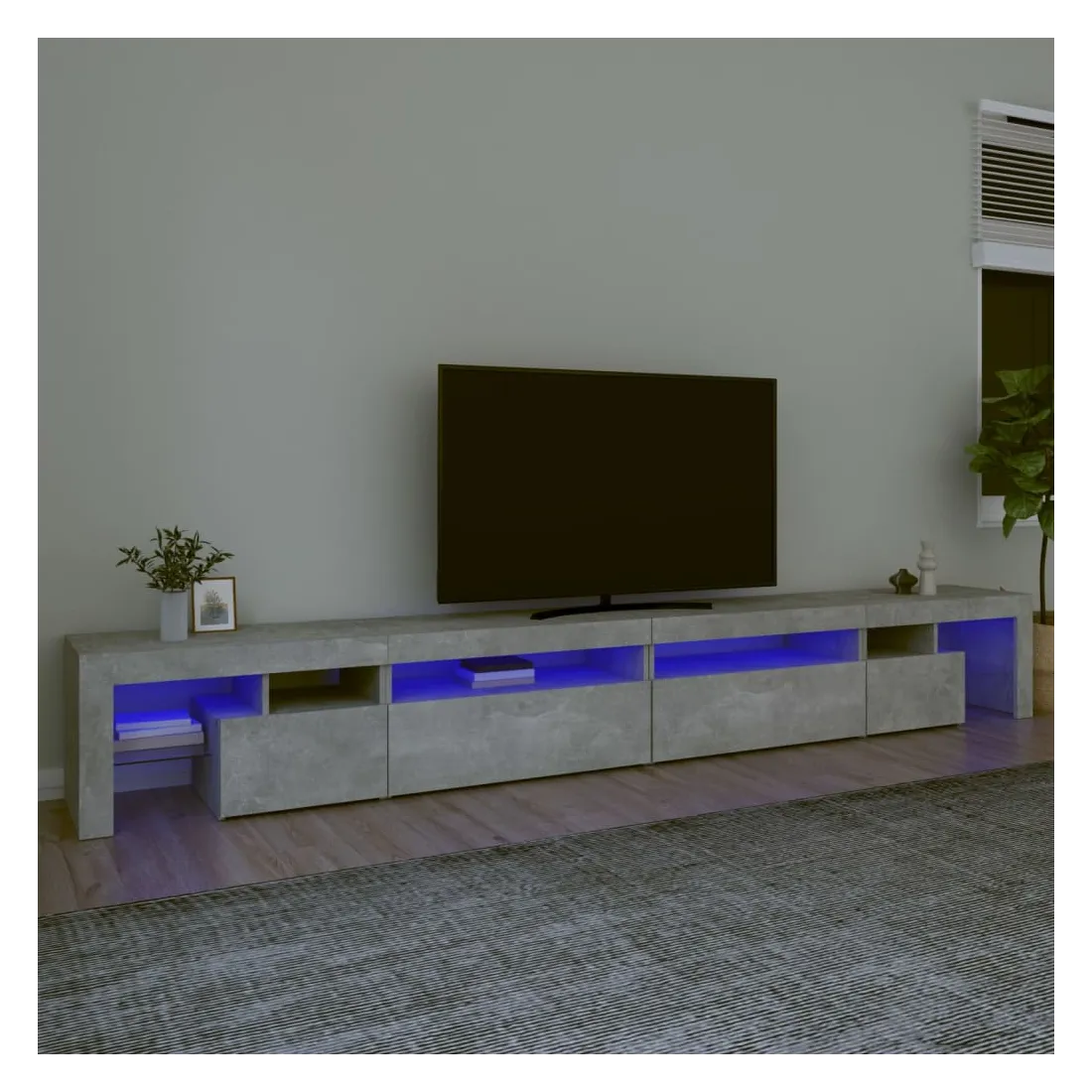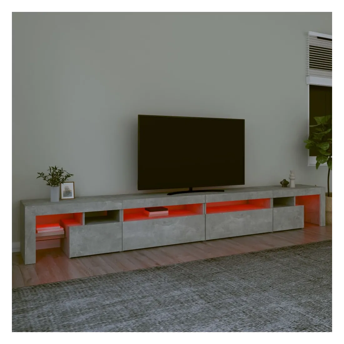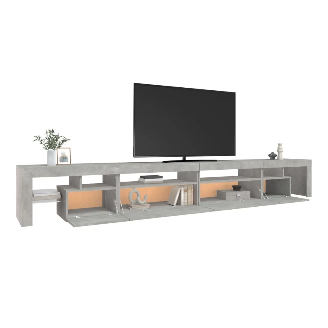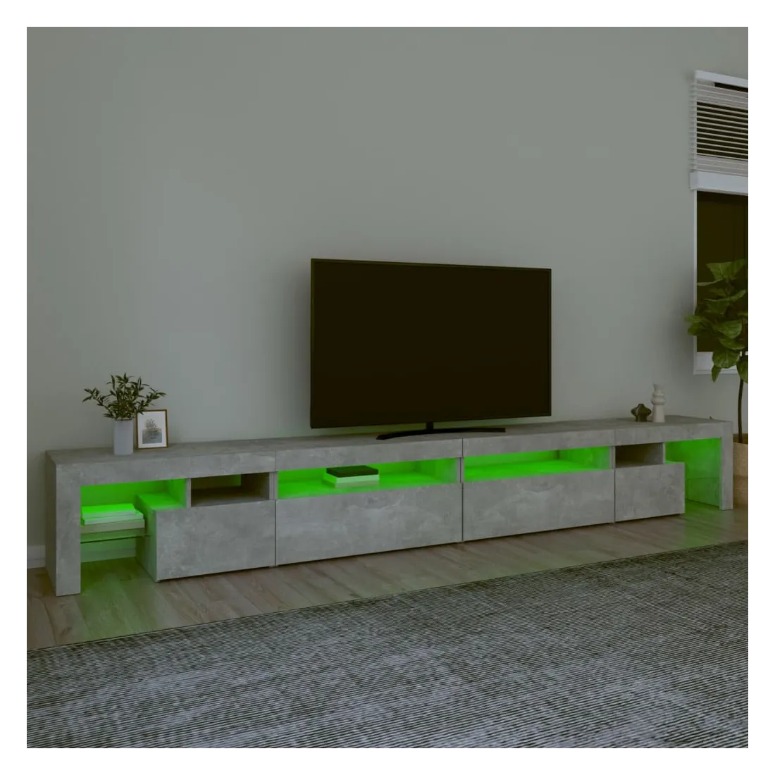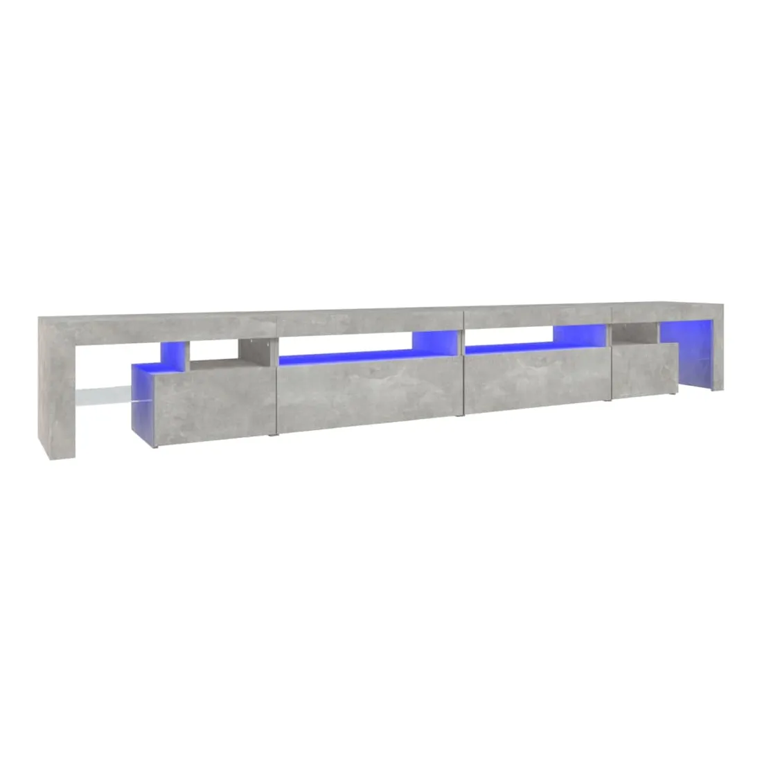 Avec un design à la fois tendance et pratique, ce meuble TV avec éclairage LED deviendra certainement un point central de votre pièce. Matériau pratique : le bois d'ingénierie est d'une qualité exceptionnelle avec une surface lisse et présente également résistance, stabilité et résistance à l'humidité. Lumières LED colorées : le meuble TV est doté de lumières LED RVB, qui ont différents menus pour changer la couleur des lumières et laisser la couleur s'ajuster automatiquement. Les lumières LED soulignent l'aspect moderne et contribuent à la sensation de tendance.Grand espace de rangement : le meuble TV offre un grand espace de rangement pour garder vos magazines, livres, télécommandes et autres petits objets bien organisés et à portée de main.Fonction d'affichage : le dessus robuste du meuble média est idéal pour exposer des objets décoratifs, des cadres photo et des plantes en pot. Remarque :Ce produit est doté d'un connecteur USB, mais la source d'alimentation certifiée de USB 5V n'est pas incluse.Chaque produit est livré avec un manuel de montage dans la boîte pour un montage facile.