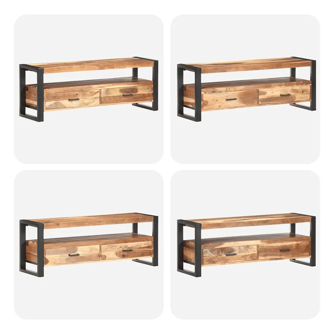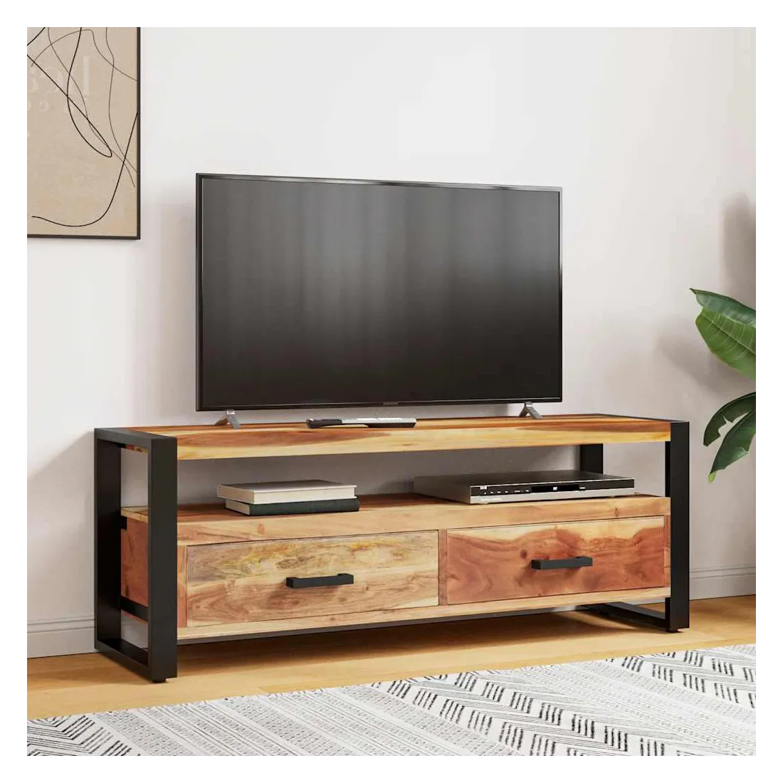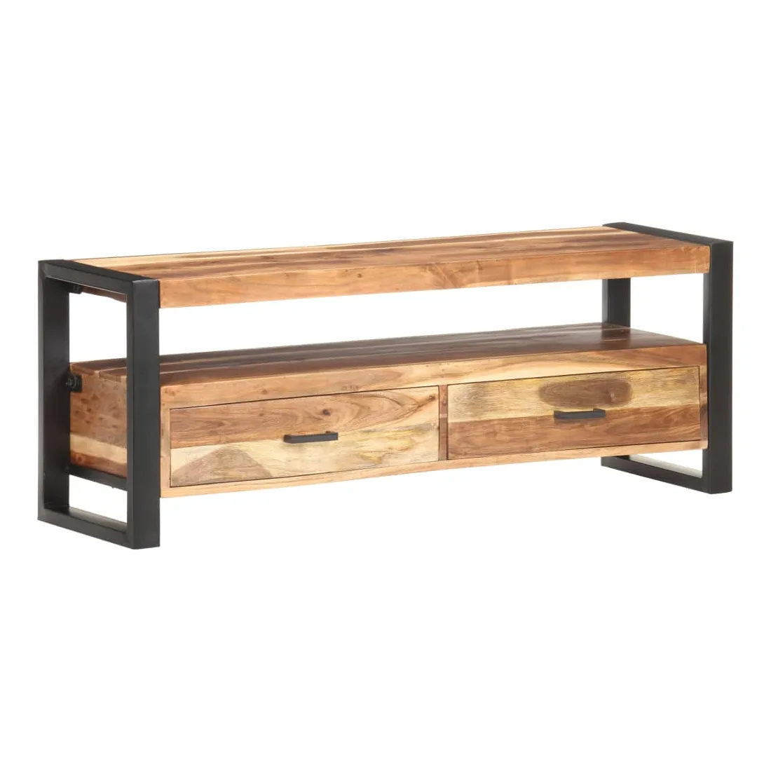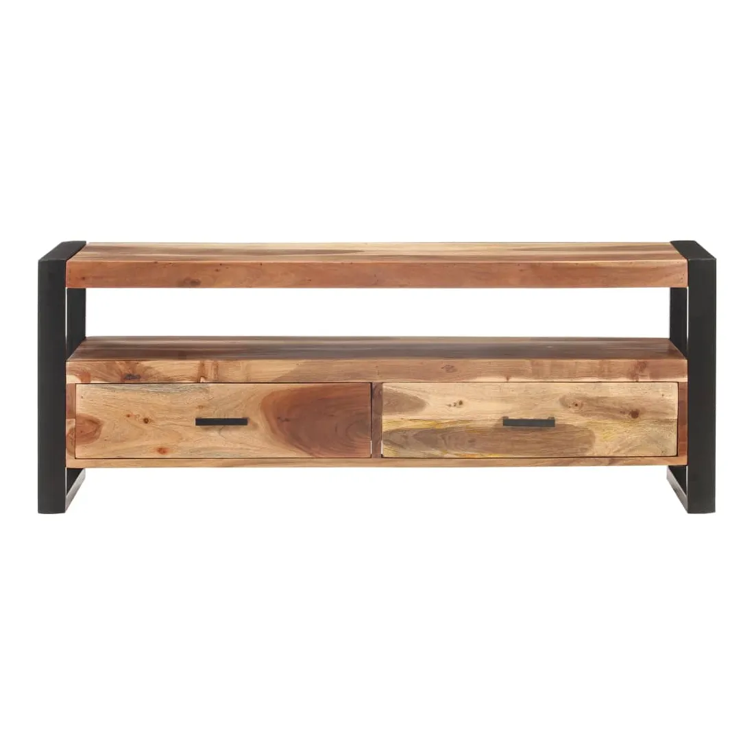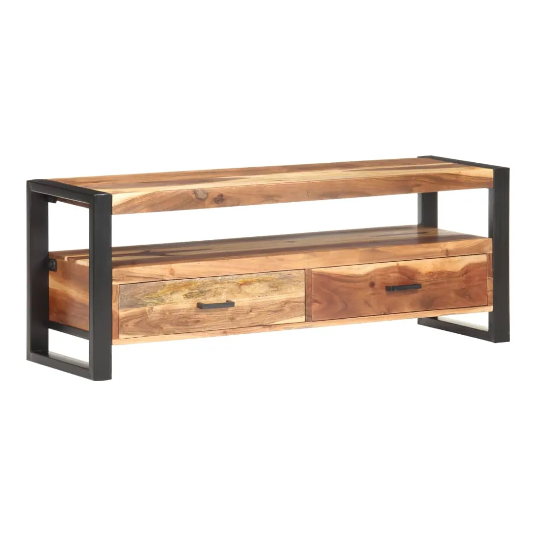 Ce magnifique meuble TV en bois est à la fois tendance et pratique, ce qui en fait un point central de votre pièce. Ce meuble TV de style vintage, fait d’acacia massif et de bois d'hévéa avec finition miel, est un supplément intemporel à votre maison. Chaque étape du processus est réalisée avec le plus grand soin, que ce soit le polissage, la peinture ou le laquage. Le meuble TV est stable et durable avec son cadre en acier solide. Il dispose de deux tiroirs pour ranger les bibelots et d’une étagère pour conserver les appareils multimédia, les consoles de jeux et les magazines. Le meuble TV peut également être utilisé comme armoire latérale, armoire hifi, etc. Remarque importante : les couleurs varient d'une pièce à l'autre, rendant chaque meuble TV unique. La livraison est aléatoire, ce qui garantit l'exclusivité et l'individualité de votre produit.