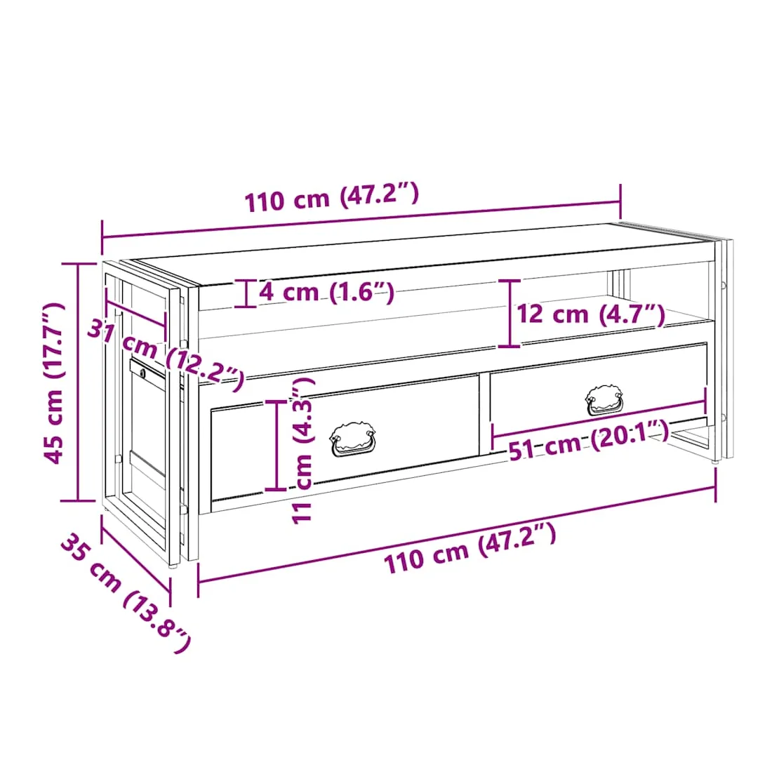 - Dimensions : 120 x 35 x 45 cm (L x l x H)