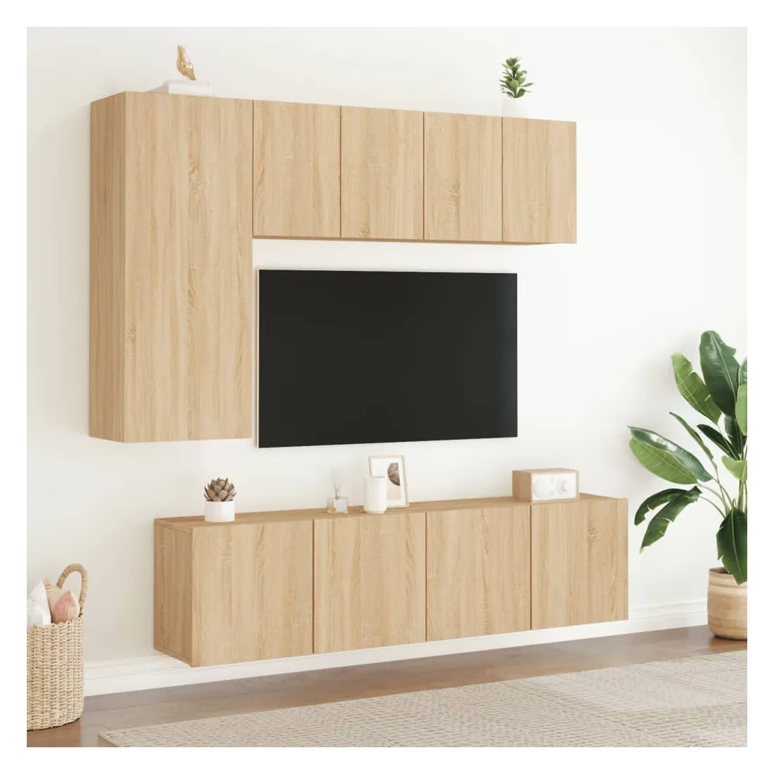 Ces unités murales TV sont la solution parfaite pour votre espace de vie afin de maximiser l'espace et de garder les surfaces au sol sans encombrement. Matériau robuste : le bois d'ingénierie est d'une qualité exceptionnelle avec une surface lisse et présente également résistance, stabilité et résistance à l'humidité.Design mural : le meuble de télévision peut être fixé au mur pour ajouter un espace de stockage supplémentaire. De cette façon, vous pouvez maximiser votre espace au sol et garder la zone propre.Grand espace de rangement : le meuble TV flottant est doté de différentes options de rangement, offrant ainsi un grand espace pour ranger vos objets quotidiens tels que les livres, les DVD, les accessoires multimédias et d'autres articles bien organisés et à portée de main.Design polyvalent : vous pouvez l'utiliser comme meuble TV ou le monter sur le mur du lieu de travail pour un rangement pratique des outils ou d'autres articles divers. En outre, il transforme un mur vide en élément de design. Bon à savoir :Les vis et les chevilles pour l'intérieur du mur ne sont pas incluses. Nous vous conseillons de trouver et d'utiliser des vis et des chevilles adaptées spécifiquement à vos murs. Si vous n'êtes pas sûr, vous pouvez consulter un professionnel. Veuillez lire et suivre chaque étape des instructions.