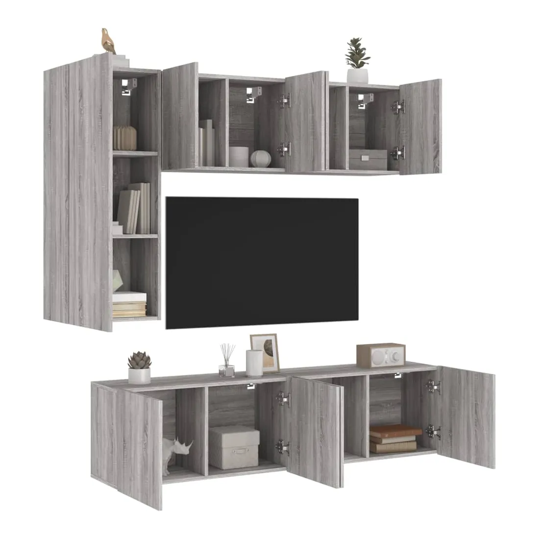 Ces unités murales TV sont la solution parfaite pour votre espace de vie afin de maximiser l'espace et de garder les surfaces au sol sans encombrement. Matériau robuste : le bois d'ingénierie est d'une qualité exceptionnelle avec une surface lisse et présente également résistance, stabilité et résistance à l'humidité.Design mural : le meuble de télévision peut être fixé au mur pour ajouter un espace de stockage supplémentaire. De cette façon, vous pouvez maximiser votre espace au sol et garder la zone propre.Grand espace de rangement : le meuble TV flottant est doté de différentes options de rangement, offrant ainsi un grand espace pour ranger vos objets quotidiens tels que les livres, les DVD, les accessoires multimédias et d'autres articles bien organisés et à portée de main.Design polyvalent : vous pouvez l'utiliser comme meuble TV ou le monter sur le mur du lieu de travail pour un rangement pratique des outils ou d'autres articles divers. En outre, il transforme un mur vide en élément de design. Bon à savoir :Les vis et les chevilles pour l'intérieur du mur ne sont pas incluses. Nous vous conseillons de trouver et d'utiliser des vis et des chevilles adaptées spécifiquement à vos murs. Si vous n'êtes pas sûr, vous pouvez consulter un professionnel. Veuillez lire et suivre chaque étape des instructions.