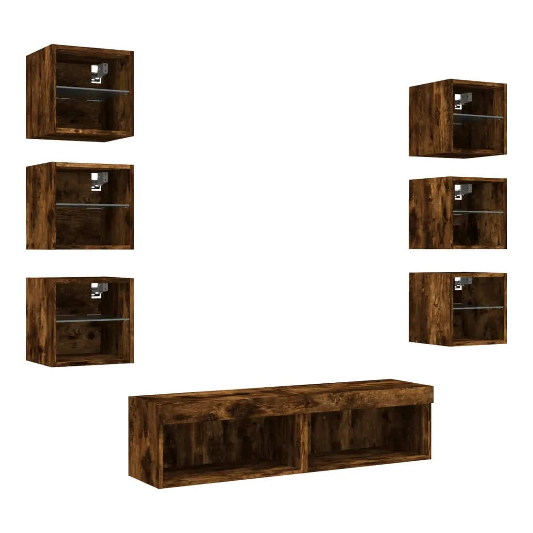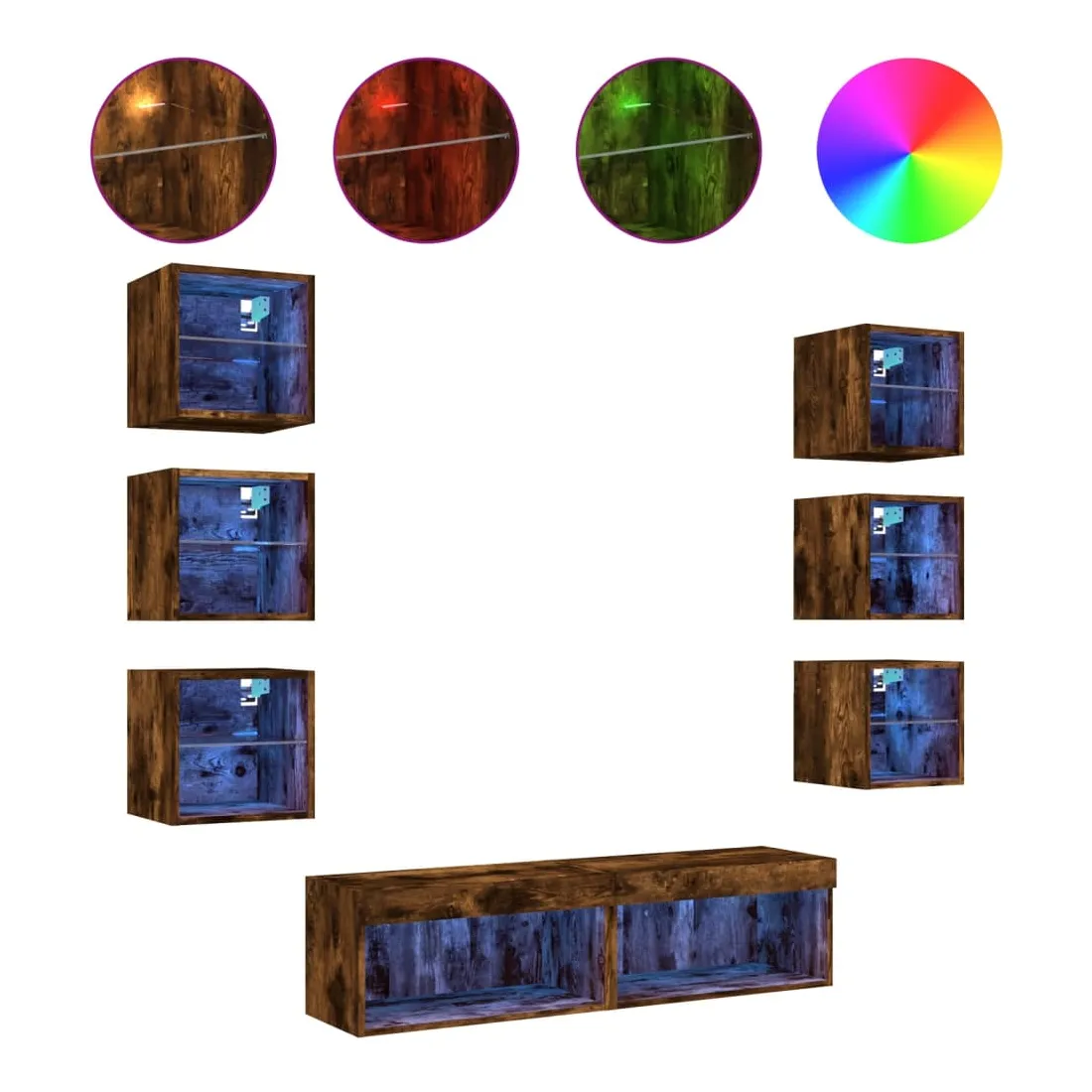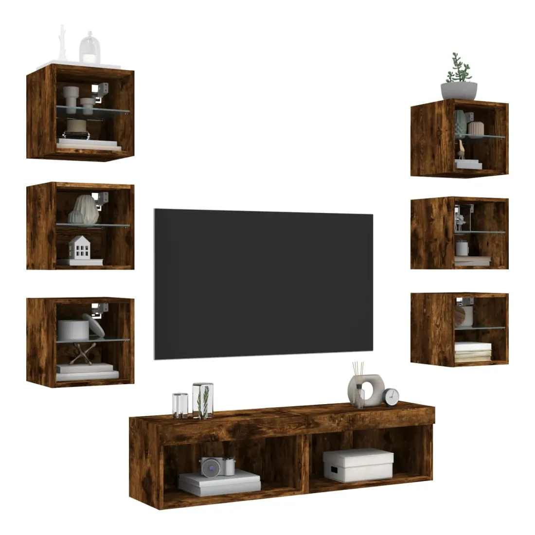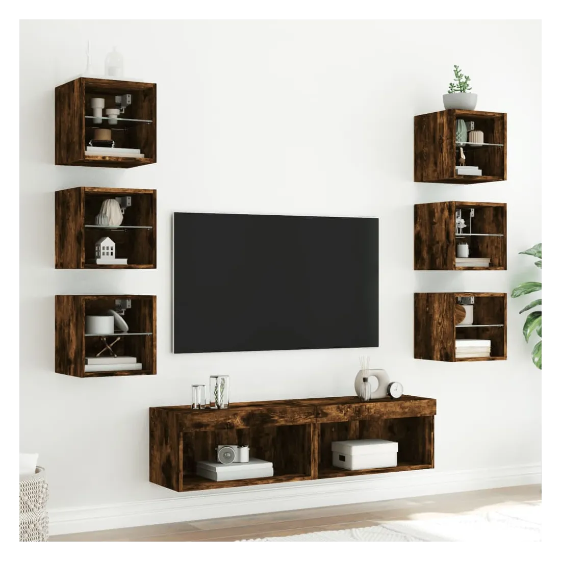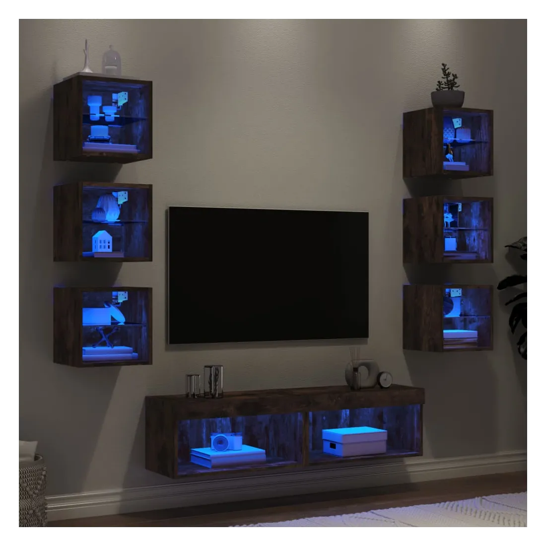 Ces unités murales TV sont la solution parfaite pour votre espace de vie afin de maximiser l'espace et de garder les surfaces au sol sans encombrement. Matériau robuste : le bois d'ingénierie est d'une qualité exceptionnelle avec une surface lisse et présente également résistance, stabilité et résistance à l'humidité.Lumières LED RVB : la unité TV est équipée de lumières LED RVB vibrantes. Avec divers menus personnalisables, vous pouvez changer sans effort la couleur des lumières et même les régler automatiquement. Ces lumières LED renforcent non seulement l'aspect contemporain du meuble TV flottant, mais aussi son attrait pour la mode.Design mural : le meuble de télévision peut être fixé au mur pour ajouter un espace de stockage supplémentaire. De cette façon, vous pouvez maximiser votre espace au sol et garder la zone propre.Grand espace de rangement : le meuble TV flottant est doté de différentes options de rangement, offrant ainsi un grand espace pour ranger vos objets quotidiens tels que les livres, les DVD, les accessoires multimédias et d'autres articles bien organisés et à portée de main.Design polyvalent : vous pouvez l'utiliser comme meuble TV ou le monter sur le mur du lieu de travail pour un rangement pratique des outils ou d'autres articles divers. En outre, il transforme un mur vide en élément de design. Bon à savoir :Les vis et les chevilles pour l'intérieur du mur ne sont pas incluses. Nous vous conseillons de trouver et d'utiliser des vis et des chevilles adaptées spécifiquement à vos murs. Si vous n'êtes pas sûr, vous pouvez consulter un professionnel. Veuillez lire et suivre chaque étape des instructions.Ce produit est doté d'un connecteur USB qui nécessite une source d'alimentation USB de 5V certifiée (non incluse).