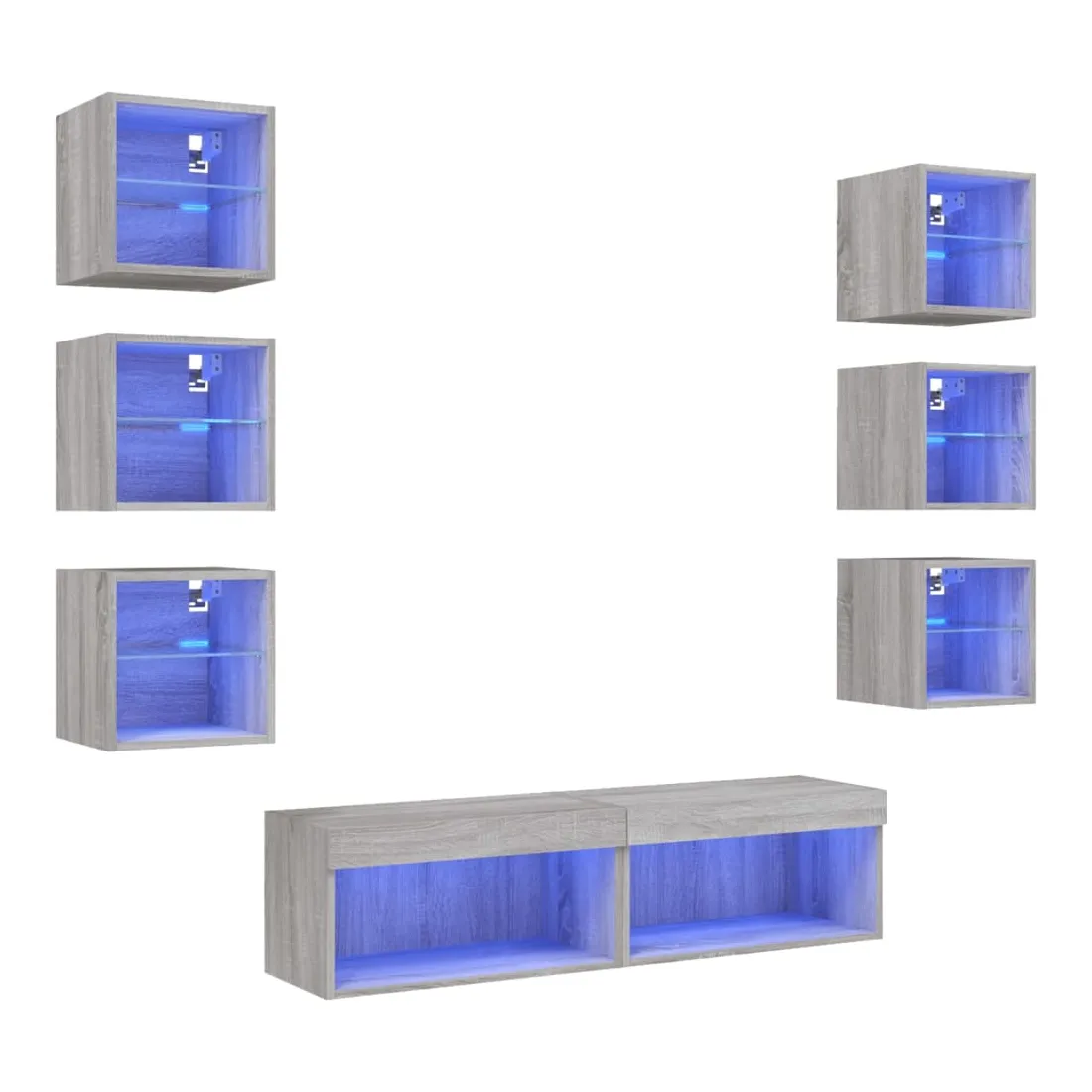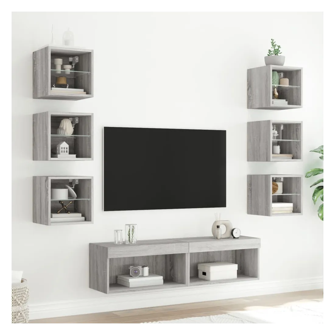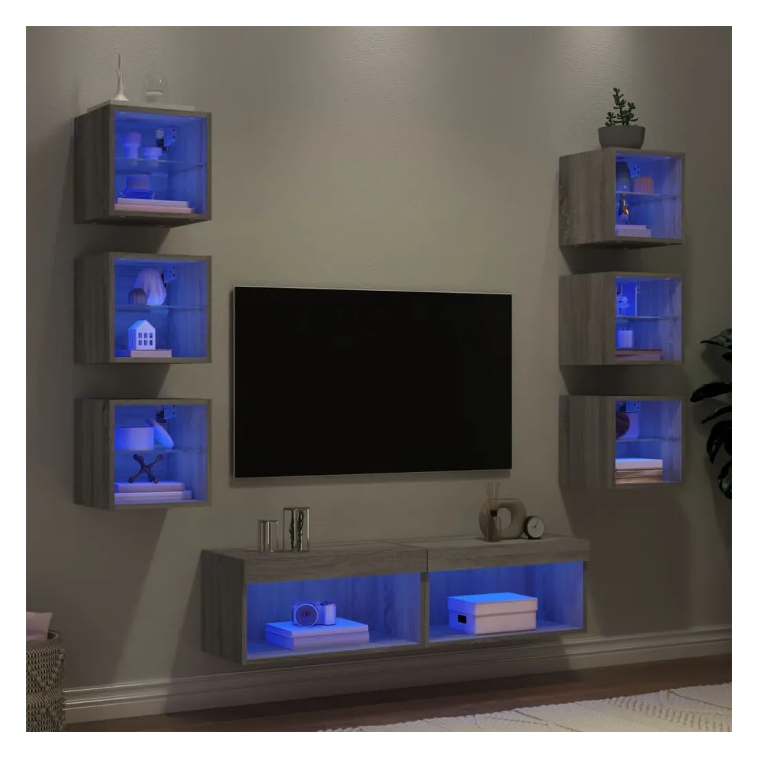 Ces unités murales TV sont la solution parfaite pour votre espace de vie afin de maximiser l'espace et de garder les surfaces au sol sans encombrement. Matériau robuste : le bois d'ingénierie est d'une qualité exceptionnelle avec une surface lisse et présente également résistance, stabilité et résistance à l'humidité.Lumières LED RVB : la unité TV est équipée de lumières LED RVB vibrantes. Avec divers menus personnalisables, vous pouvez changer sans effort la couleur des lumières et même les régler automatiquement. Ces lumières LED renforcent non seulement l'aspect contemporain du meuble TV flottant, mais aussi son attrait pour la mode.Design mural : le meuble de télévision peut être fixé au mur pour ajouter un espace de stockage supplémentaire. De cette façon, vous pouvez maximiser votre espace au sol et garder la zone propre.Grand espace de rangement : le meuble TV flottant est doté de différentes options de rangement, offrant ainsi un grand espace pour ranger vos objets quotidiens tels que les livres, les DVD, les accessoires multimédias et d'autres articles bien organisés et à portée de main.Design polyvalent : vous pouvez l'utiliser comme meuble TV ou le monter sur le mur du lieu de travail pour un rangement pratique des outils ou d'autres articles divers. En outre, il transforme un mur vide en élément de design. Bon à savoir :Les vis et les chevilles pour l'intérieur du mur ne sont pas incluses. Nous vous conseillons de trouver et d'utiliser des vis et des chevilles adaptées spécifiquement à vos murs. Si vous n'êtes pas sûr, vous pouvez consulter un professionnel. Veuillez lire et suivre chaque étape des instructions.Ce produit est doté d'un connecteur USB qui nécessite une source d'alimentation USB de 5V certifiée (non incluse).