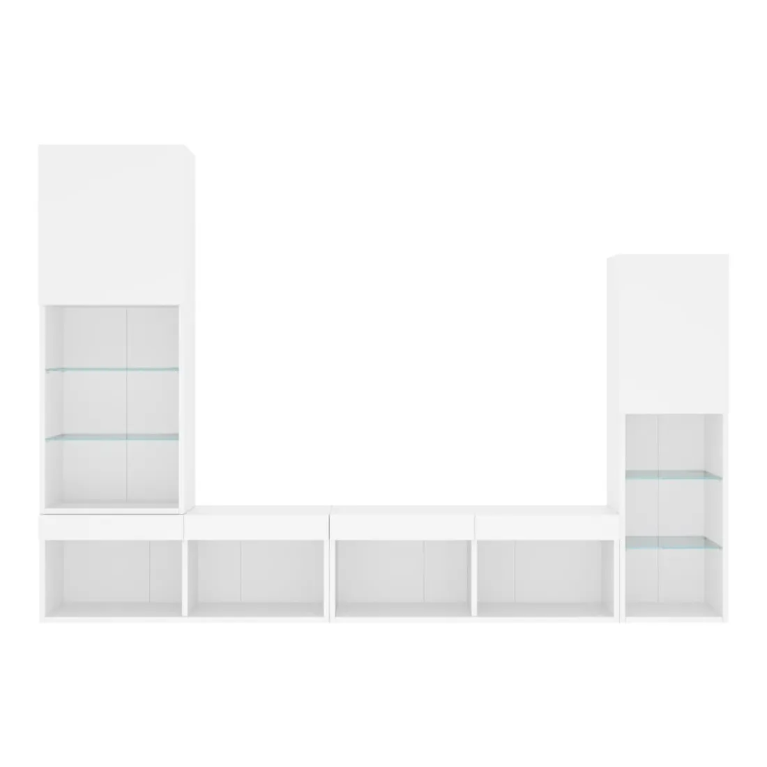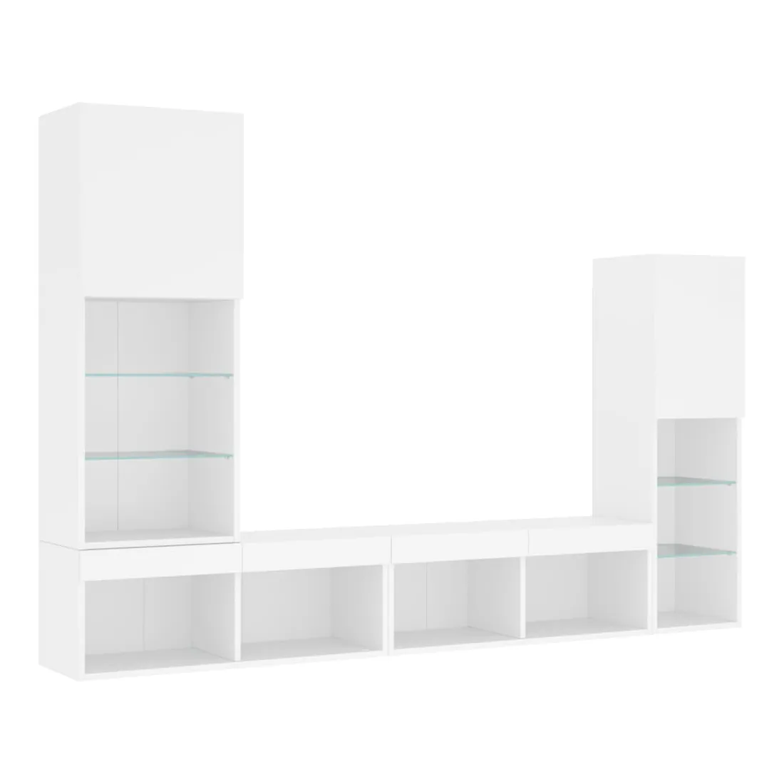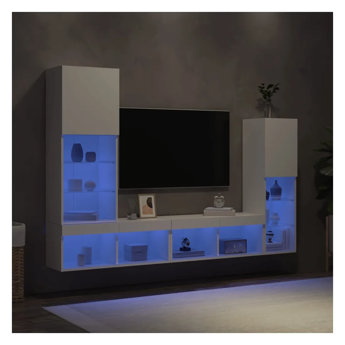 Ces unités murales TV sont la solution parfaite pour votre espace de vie afin de maximiser l'espace et de garder les surfaces au sol sans encombrement. Matériau robuste : le bois d'ingénierie est d'une qualité exceptionnelle avec une surface lisse et présente également résistance, stabilité et résistance à l'humidité.Lumières LED RVB : la unité TV est équipée de lumières LED RVB vibrantes. Avec divers menus personnalisables, vous pouvez changer sans effort la couleur des lumières et même les régler automatiquement. Ces lumières LED renforcent non seulement l'aspect contemporain du meuble TV flottant, mais aussi son attrait pour la mode.Design mural : le meuble de télévision peut être fixé au mur pour ajouter un espace de stockage supplémentaire. De cette façon, vous pouvez maximiser votre espace au sol et garder la zone propre.Grand espace de rangement : le meuble TV flottant est doté de différentes options de rangement, offrant ainsi un grand espace pour ranger vos objets quotidiens tels que les livres, les DVD, les accessoires multimédias et d'autres articles bien organisés et à portée de main.Design polyvalent : vous pouvez l'utiliser comme meuble TV ou le monter sur le mur du lieu de travail pour un rangement pratique des outils ou d'autres articles divers. De plus, il transforme un mur vide en un élément de décoration. Bon à savoir :Les vis et les chevilles pour l'intérieur du mur ne sont pas incluses. Nous vous conseillons de trouver et d'utiliser des vis et des chevilles adaptées spécifiquement à vos murs. Si vous n'êtes pas sûr, vous pouvez consulter un professionnel. Veuillez lire et suivre chaque étape des instructions.Ce produit est doté d'un connecteur USB qui nécessite une source d'alimentation USB de 5V certifiée (non incluse).