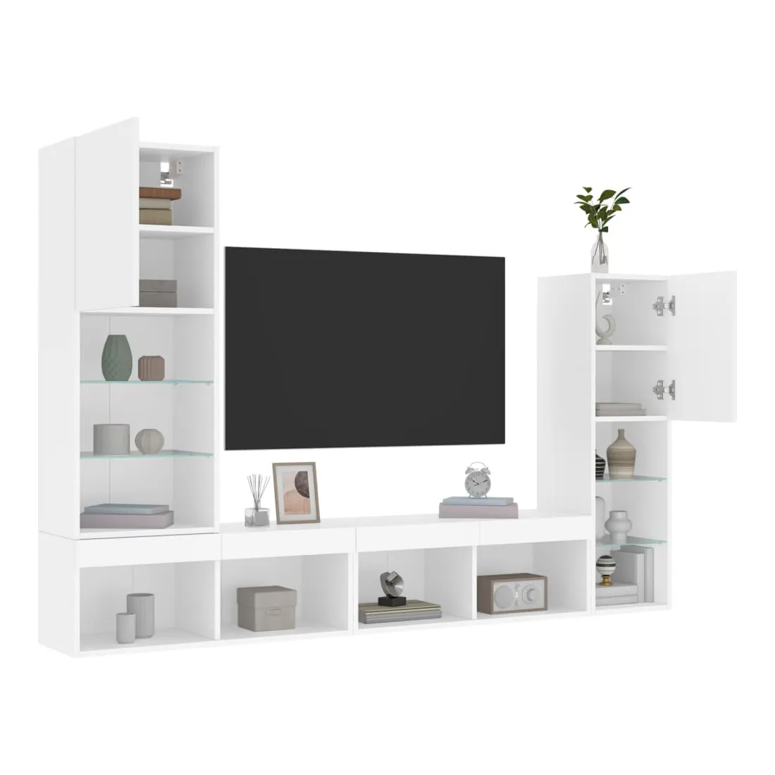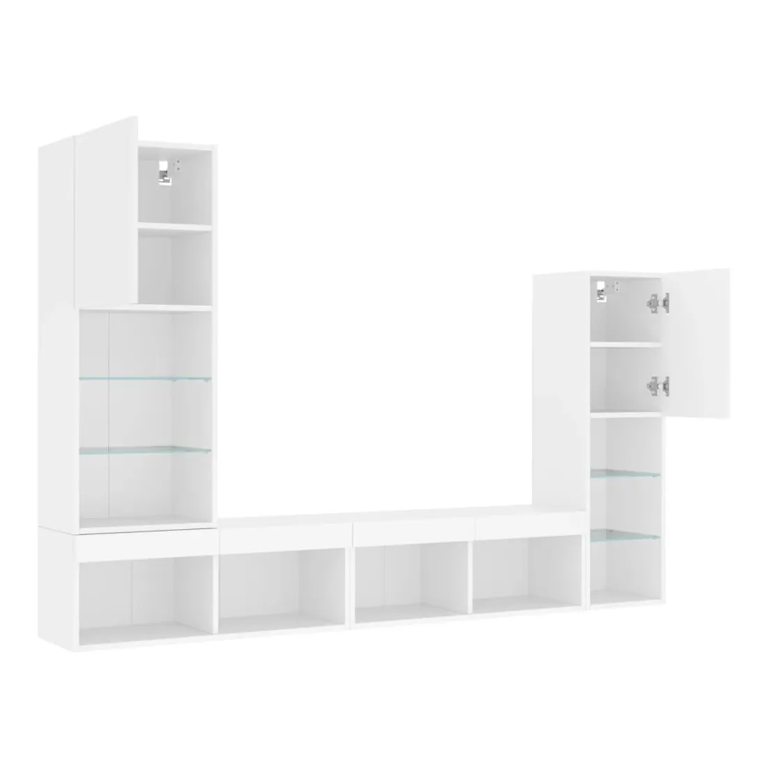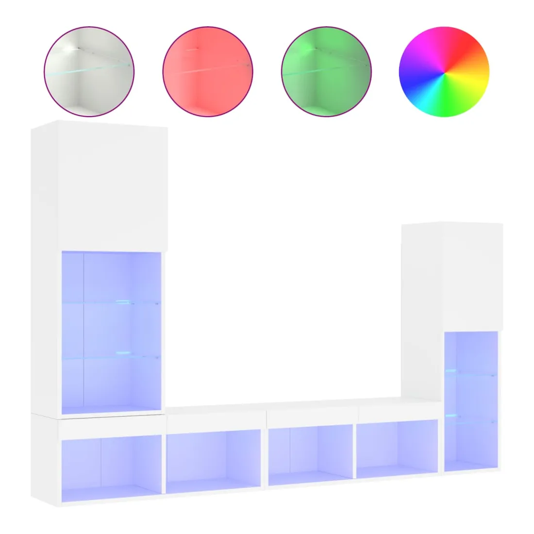 Ces unités murales TV sont la solution parfaite pour votre espace de vie afin de maximiser l'espace et de garder les surfaces au sol sans encombrement. Matériau robuste : le bois d'ingénierie est d'une qualité exceptionnelle avec une surface lisse et présente également résistance, stabilité et résistance à l'humidité.Lumières LED RVB : la unité TV est équipée de lumières LED RVB vibrantes. Avec divers menus personnalisables, vous pouvez changer sans effort la couleur des lumières et même les régler automatiquement. Ces lumières LED renforcent non seulement l'aspect contemporain du meuble TV flottant, mais aussi son attrait pour la mode.Design mural : le meuble de télévision peut être fixé au mur pour ajouter un espace de stockage supplémentaire. De cette façon, vous pouvez maximiser votre espace au sol et garder la zone propre.Grand espace de rangement : le meuble TV flottant est doté de différentes options de rangement, offrant ainsi un grand espace pour ranger vos objets quotidiens tels que les livres, les DVD, les accessoires multimédias et d'autres articles bien organisés et à portée de main.Design polyvalent : vous pouvez l'utiliser comme meuble TV ou le monter sur le mur du lieu de travail pour un rangement pratique des outils ou d'autres articles divers. De plus, il transforme un mur vide en un élément de décoration. Bon à savoir :Les vis et les chevilles pour l'intérieur du mur ne sont pas incluses. Nous vous conseillons de trouver et d'utiliser des vis et des chevilles adaptées spécifiquement à vos murs. Si vous n'êtes pas sûr, vous pouvez consulter un professionnel. Veuillez lire et suivre chaque étape des instructions.Ce produit est doté d'un connecteur USB qui nécessite une source d'alimentation USB de 5V certifiée (non incluse).
