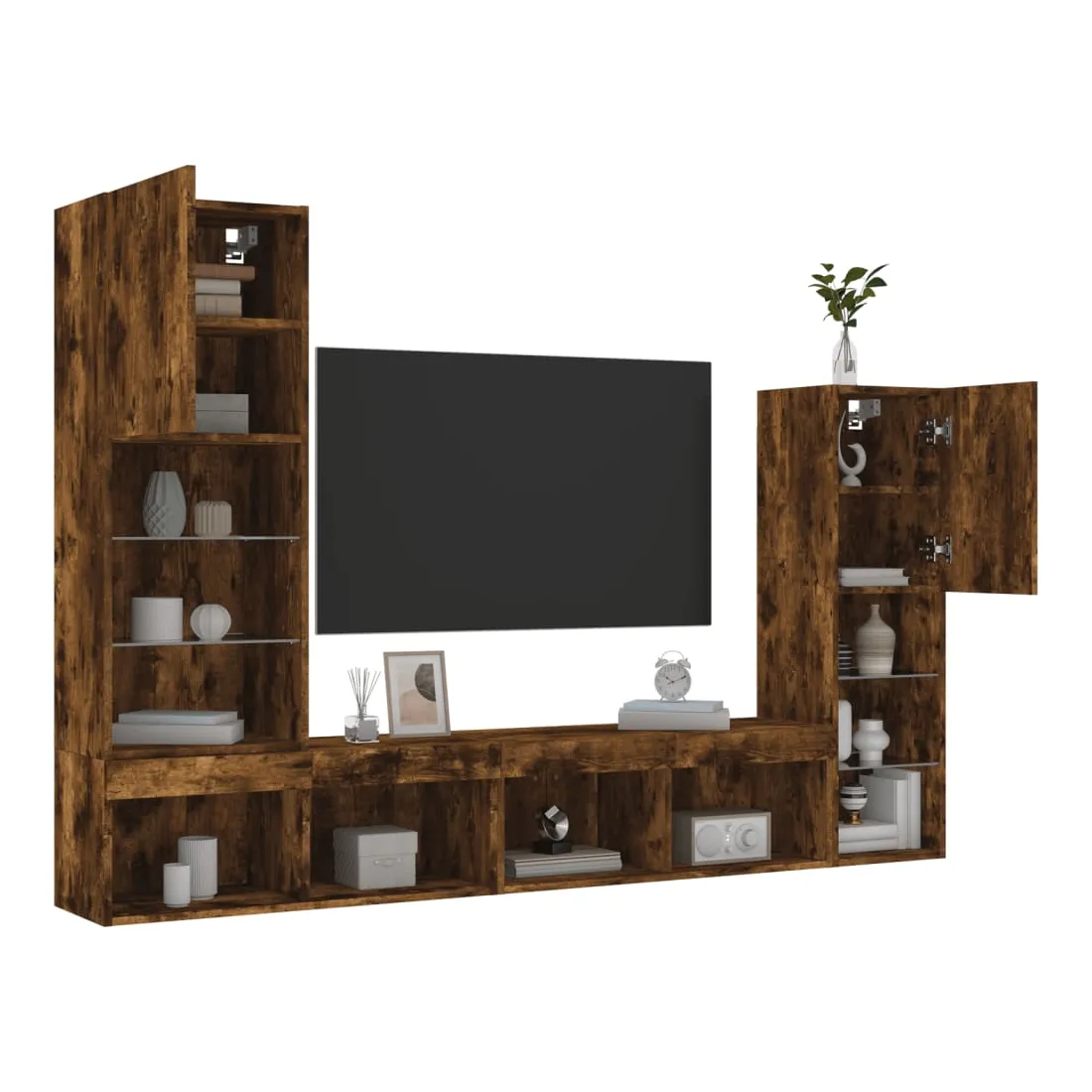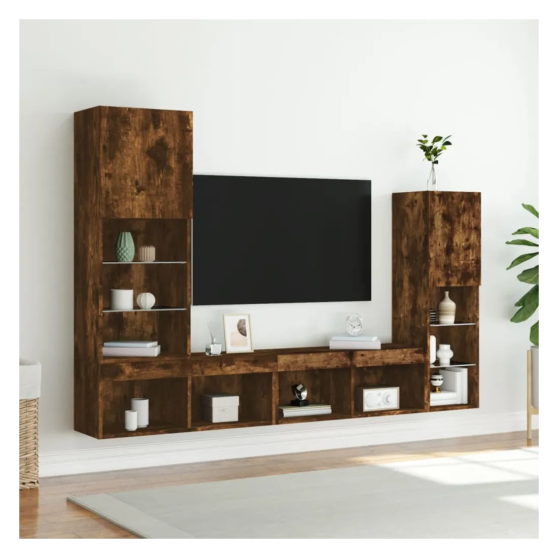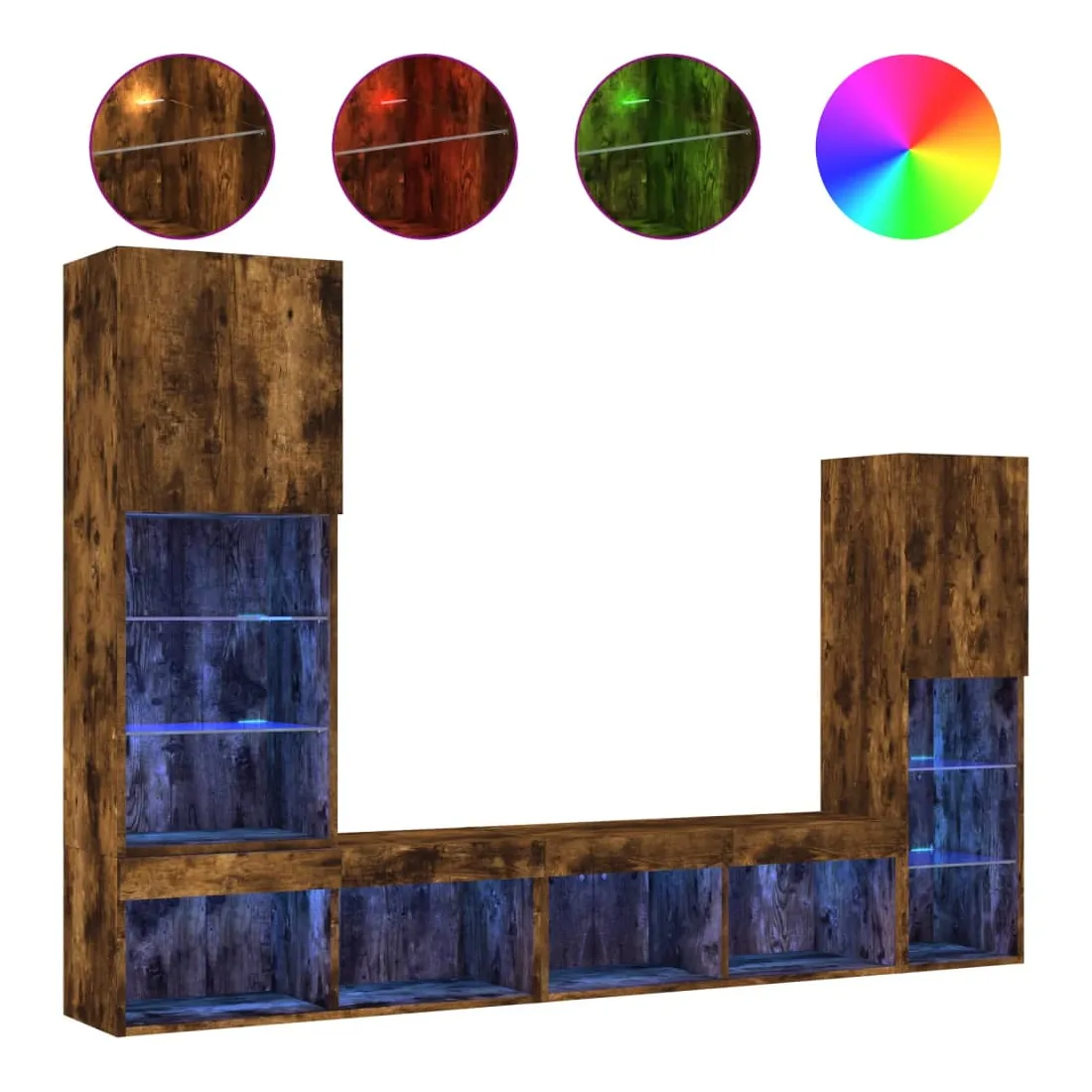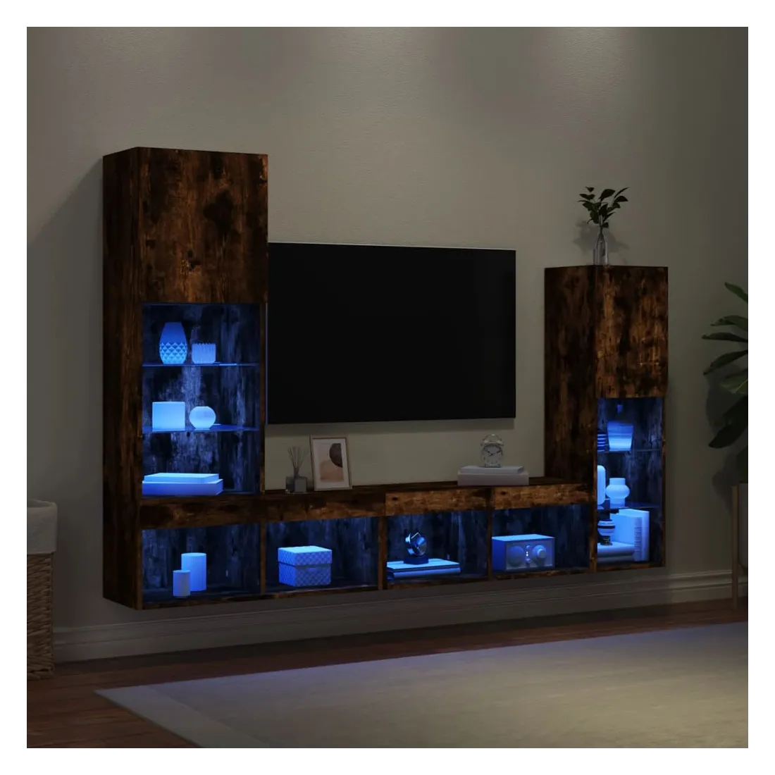 Ces unités murales TV sont la solution parfaite pour votre espace de vie afin de maximiser l'espace et de garder les surfaces au sol sans encombrement. Matériau robuste : le bois d'ingénierie est d'une qualité exceptionnelle avec une surface lisse et présente également résistance, stabilité et résistance à l'humidité.Lumières LED RVB : la unité TV est équipée de lumières LED RVB vibrantes. Avec divers menus personnalisables, vous pouvez changer sans effort la couleur des lumières et même les régler automatiquement. Ces lumières LED renforcent non seulement l'aspect contemporain du meuble TV flottant, mais aussi son attrait pour la mode.Design mural : le meuble de télévision peut être fixé au mur pour ajouter un espace de stockage supplémentaire. De cette façon, vous pouvez maximiser votre espace au sol et garder la zone propre.Grand espace de rangement : le meuble TV flottant est doté de différentes options de rangement, offrant ainsi un grand espace pour ranger vos objets quotidiens tels que les livres, les DVD, les accessoires multimédias et d'autres articles bien organisés et à portée de main.Design polyvalent : vous pouvez l'utiliser comme meuble TV ou le monter sur le mur du lieu de travail pour un rangement pratique des outils ou d'autres articles divers. De plus, il transforme un mur vide en un élément de décoration. Bon à savoir :Les vis et les chevilles pour l'intérieur du mur ne sont pas incluses. Nous vous conseillons de trouver et d'utiliser des vis et des chevilles adaptées spécifiquement à vos murs. Si vous n'êtes pas sûr, vous pouvez consulter un professionnel. Veuillez lire et suivre chaque étape des instructions.Ce produit est doté d'un connecteur USB qui nécessite une source d'alimentation USB de 5V certifiée (non incluse).