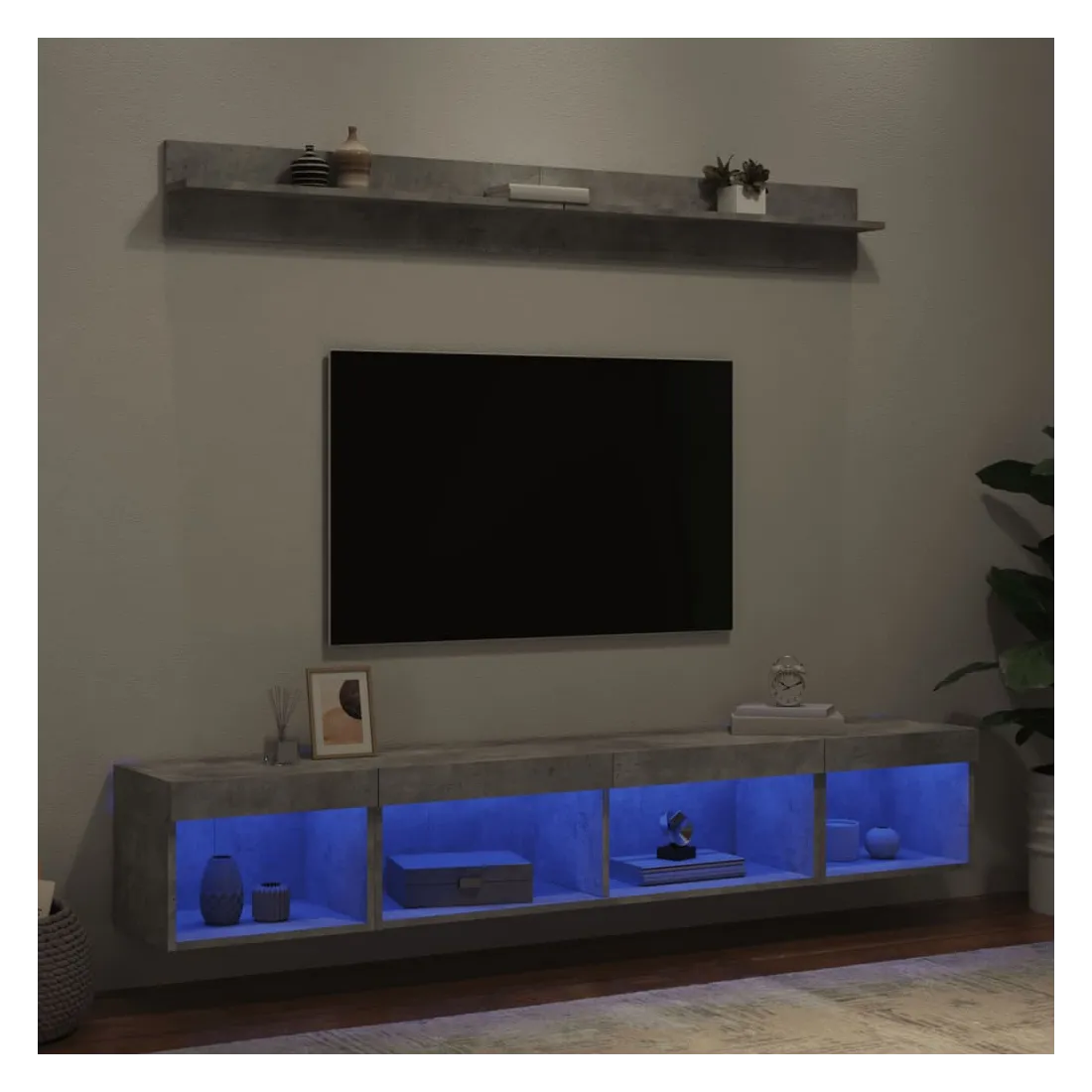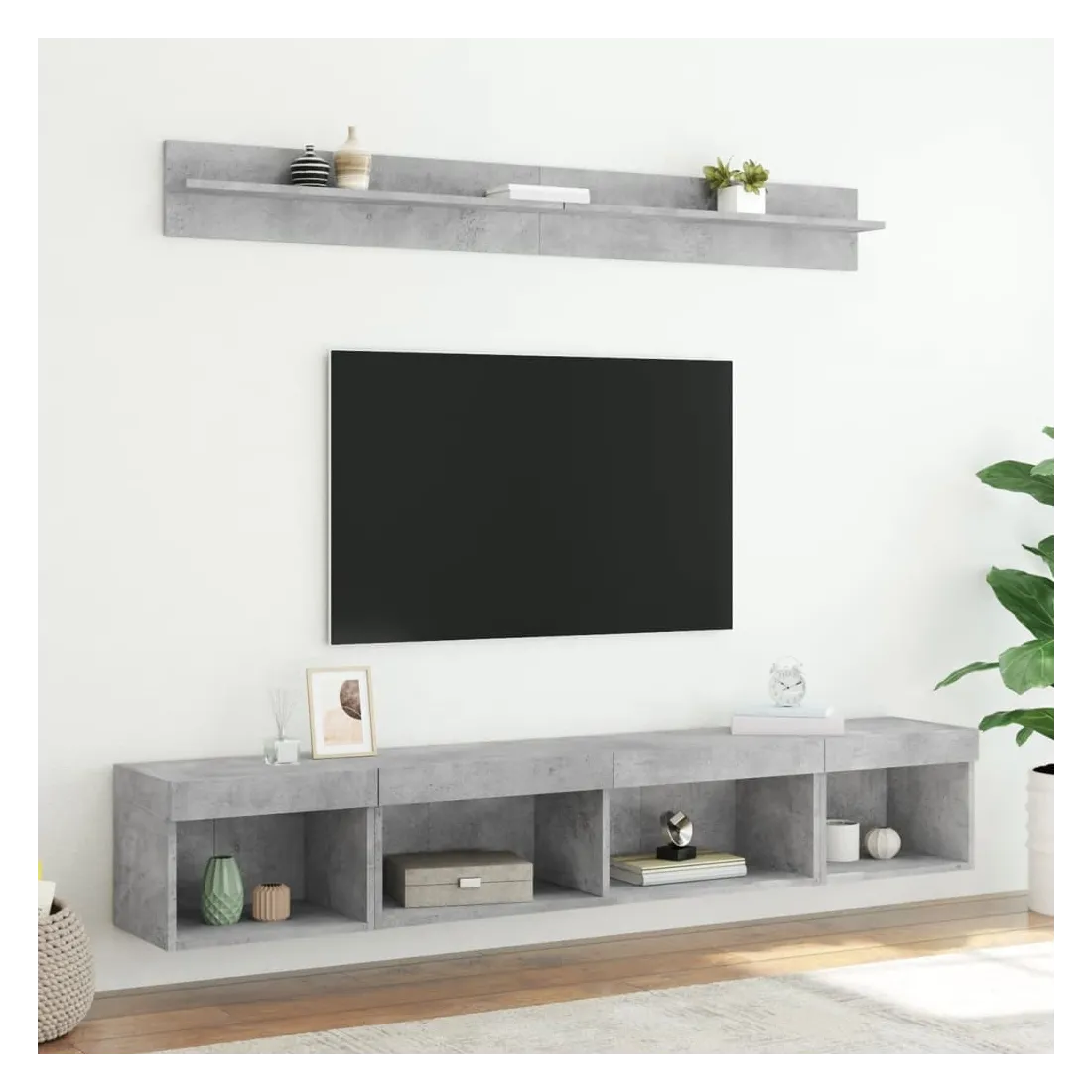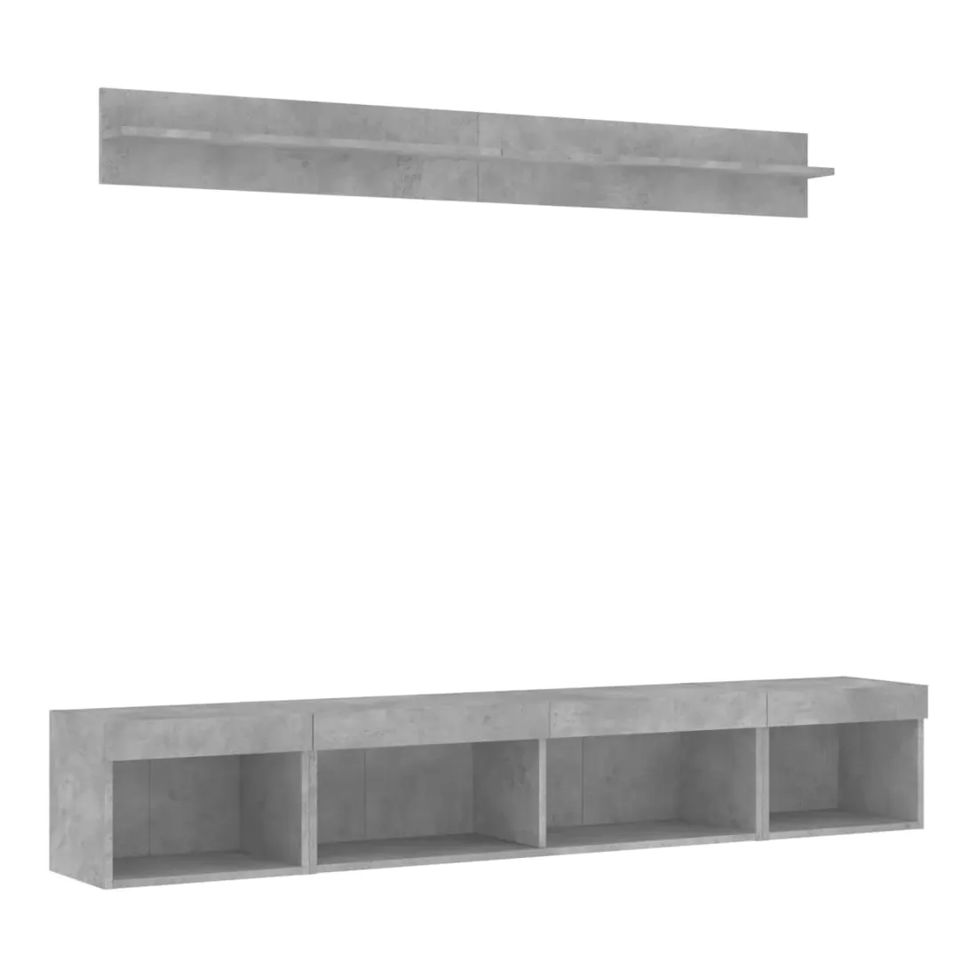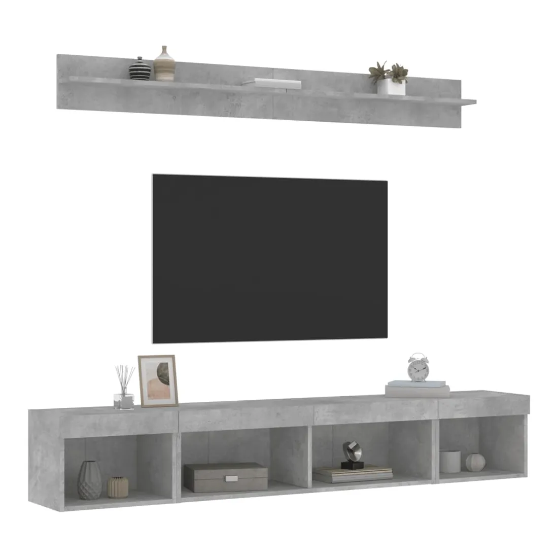 Unités murales TV avec LED 5 pcs gris béton bois d'ingénierie