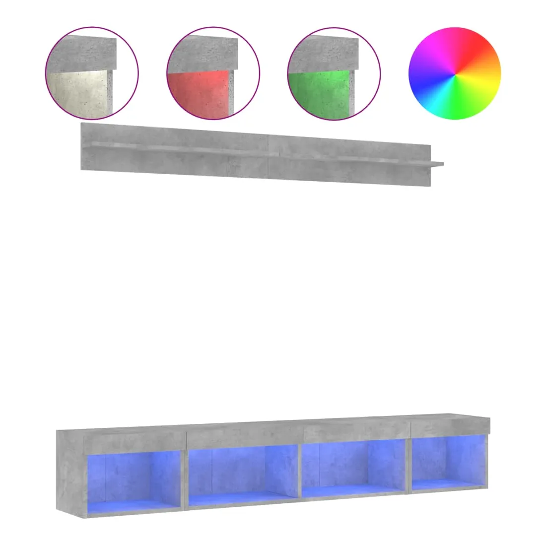 vidaXLCes unités murales TV sont la solution parfaite pour votre espace de vie afin de maximiser l'espace et de garder les surfaces au sol sans encombrement. Matériau robuste : le bois d'ingénierie est d'une qualité exceptionnelle avec une surface lisse et présente également résistance, stabilité et résistance à l'humidité.Lumières LED RVB : la unité TV est équipée de lumières LED RVB vibrantes. Avec divers menus personnalisables, vous pouvez changer sans effort la couleur des lumières et même les régler automatiquement. Ces lumières LED renforcent non seulement l'aspect contemporain du meuble TV flottant, mais aussi son attrait pour la mode.Design mural : le meuble de télévision peut être fixé au mur pour ajouter un espace de stockage supplémentaire. De cette façon, vous pouvez maximiser votre espace au sol et garder la zone propre.Grand espace de rangement : le meuble TV flottant est doté de différentes options de rangement, offrant ainsi un grand espace pour ranger vos objets quotidiens tels que les livres, les DVD, les accessoires multimédias et d'autres articles bien organisés et à portée de main.Design polyvalent : vous pouvez l'utiliser comme meuble TV ou le monter sur le mur du lieu de travail pour un rangement pratique des outils ou d'autres articles divers. De plus, il transforme un mur vide en un élément de décoration. Bon à savoir :Les vis et les chevilles pour l'intérieur du mur ne sont pas incluses. Nous vous conseillons de trouver et d'utiliser des vis et des chevilles adaptées spécifiquement à vos murs. Si vous n'êtes pas sûr, vous pouvez consulter un professionnel. Veuillez lire et suivre chaque étape des instructions.Ce produit est doté d'un connecteur USB qui nécessite une source d'alimentation USB de 5V certifiée (non incluse).