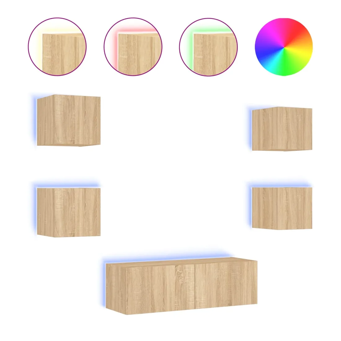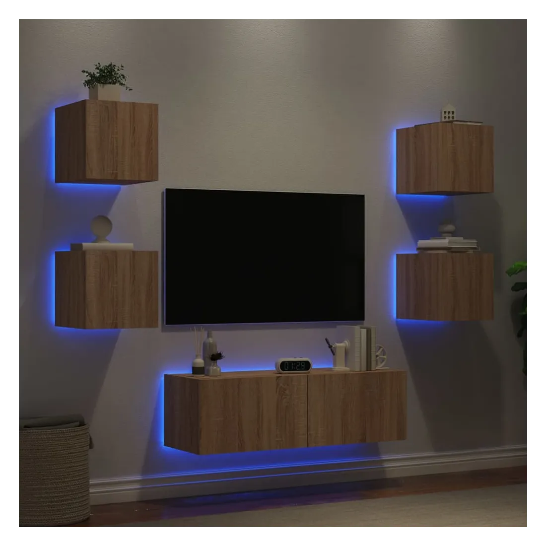 Ces armoires TV murales avec lumières LED sont la solution parfaite pour votre espace de vie afin de maximiser l'espace et de garder les surfaces au sol sans encombrement. Matériau durable : le bois d'ingénierie est d'une qualité exceptionnelle avec une surface lisse et présente également résistance, stabilité et résistance à l'humidité. Fabriqués en bois d'ingénierie, ces meubles TV flottants sont robustes et durables.Grand espace de rangement : les meubles TV muraux disposent d'un grand espace de rangement pour placer vos lecteurs DVD, livres, magazines ou autres objets décoratifs.Lumières LED RVB : les unités multimédia murales sont équipées d'éclairages LED RVB. Avec divers menus personnalisables, vous pouvez changer sans effort la couleur des lumières et même les régler automatiquement.Design mural : ces meubles TV avec rangement peuvent être fixés au mur pour ajouter de l'espace de stockage supplémentaire. De cette façon, vous pouvez maximiser votre espace au sol et garder la zone propre. Bon à savoir :Les vis et les chevilles pour l'intérieur du mur ne sont pas incluses. Nous vous conseillons de trouver et d'utiliser des vis et des chevilles adaptées spécifiquement à vos murs. Si vous n'êtes pas sûr, vous pouvez consulter un professionnel. Veuillez lire et suivre chaque étape des instructions.Ce produit est doté d'un connecteur USB qui nécessite une source d'alimentation USB de 5V certifiée (non incluse).