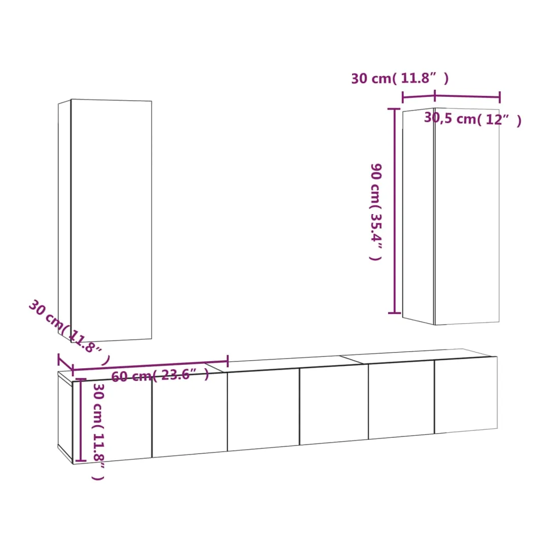 - 2 x meuble TV : 30,5 x 30 x 90 cm (l x P x H)