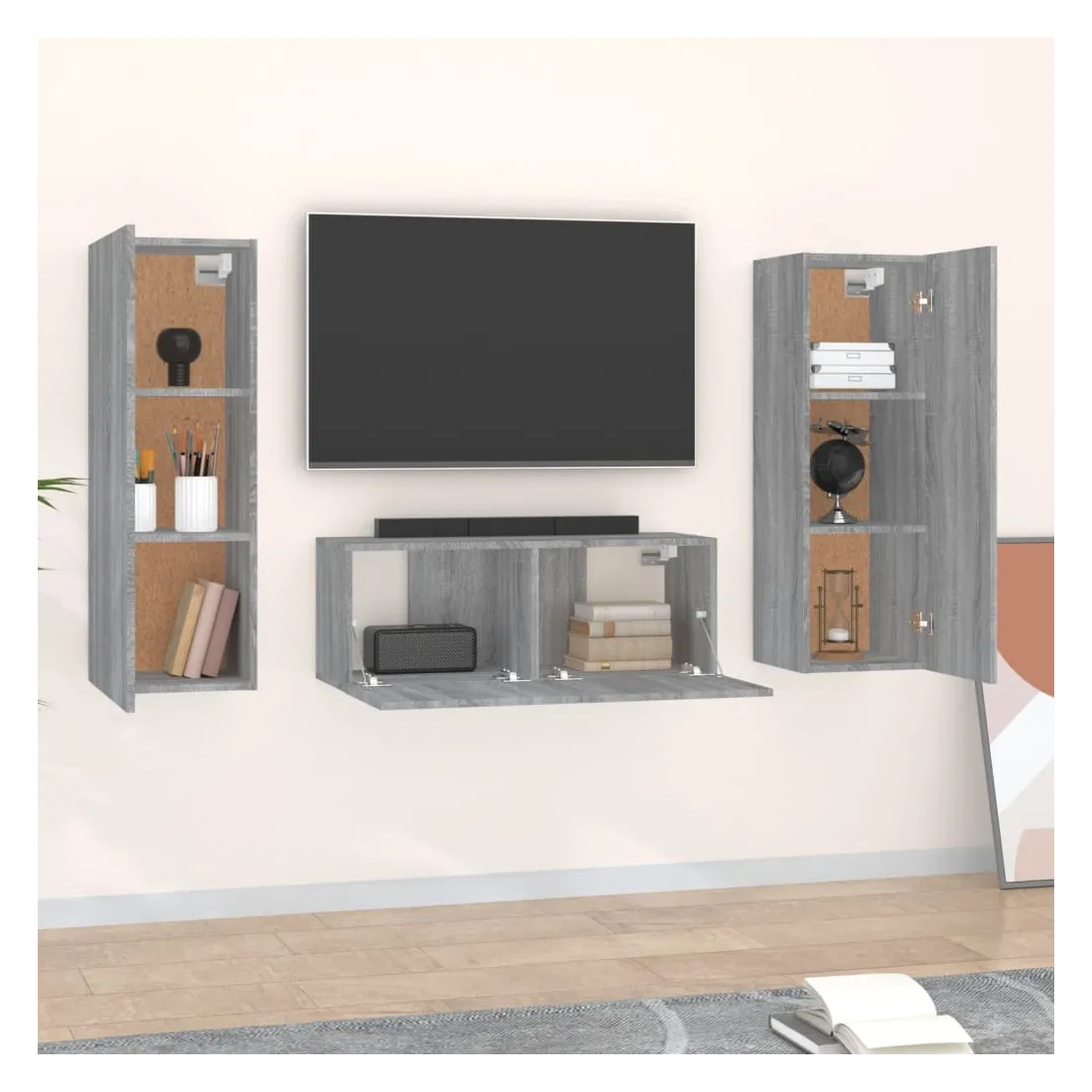 Cet ensemble de meubles TV classique est conçu pour être le point central de votre pièce, avec un design à la fois tendance et pratique. Matériau robuste : le bois d'ingénierie est d'une qualité exceptionnelle avec une surface lisse et présente également résistance, stabilité et résistance à l'humidité.Grand espace de rangement : chaque meuble TV offre un grand espace de rangement pour garder tous vos magazines, DVD et autres articles bien organisés.Design mural : le meuble TV ne prend pas de place au sol. Vous pouvez l'accrocher au mur facilement. Remarque :Les vis et les chevilles pour l'intérieur du mur ne sont pas incluses. Recherchez et utilisez des vis et des chevilles adaptées à vos murs. Si vous n'êtes pas sûr, demandez conseil à un professionnel. Lisez et suivez attentivement chaque étape des instructions.Chaque produit est livré avec un manuel de montage dans la boîte pour un montage facile.