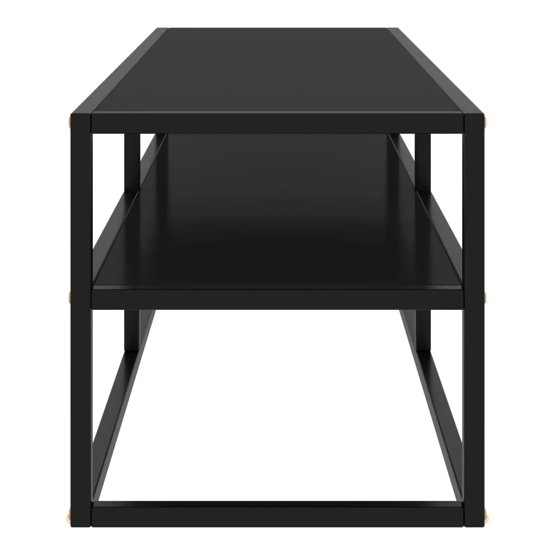 Ce meuble TV, au design épuré et moderne, se veut un supplément pratique à votre espace de vie actuel. Ce meuble stéréo est en verre trempé, robuste et stable. Il est également facile à nettoyer avec un chiffon humide. Le cadre en acier enduit de poudre ajoute à sa robustesse. L’étagère sous le dessus de table offre un espace de rangement suffisant pour garder vos DVD, appareils multimédia, livres et petits objets essentiels organisés et à portée de main.
