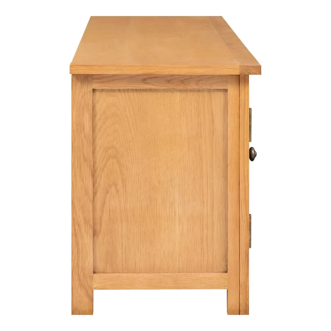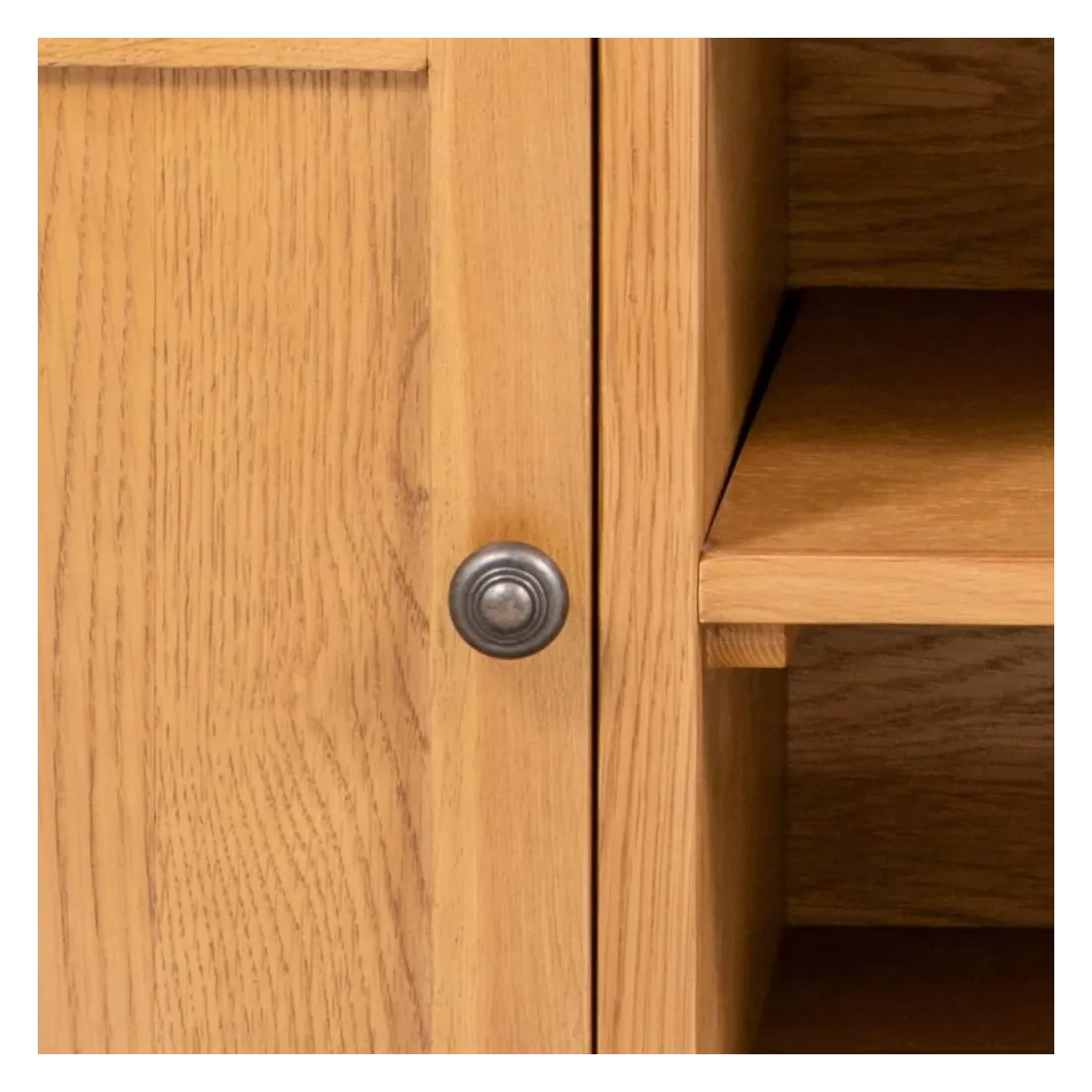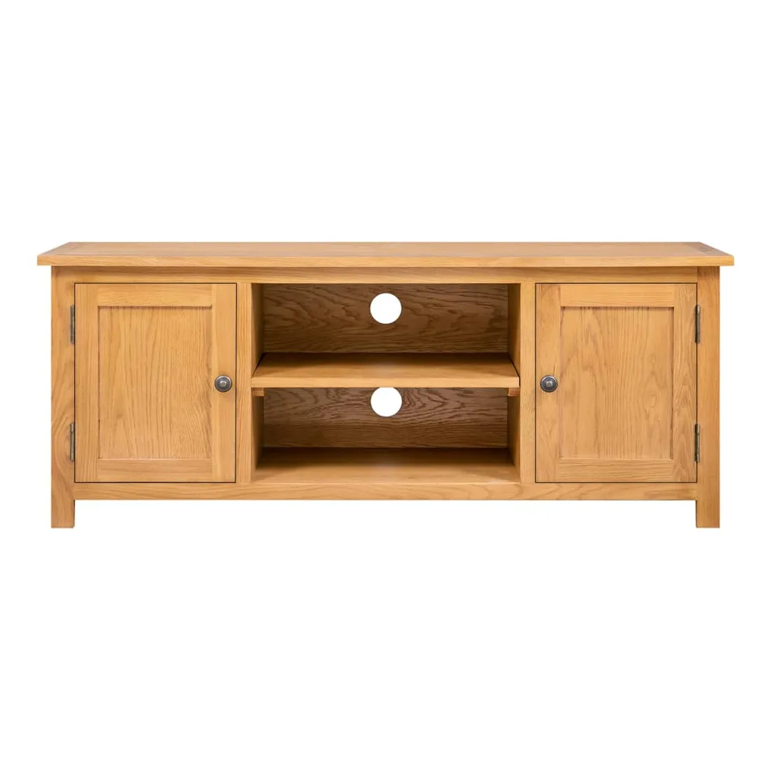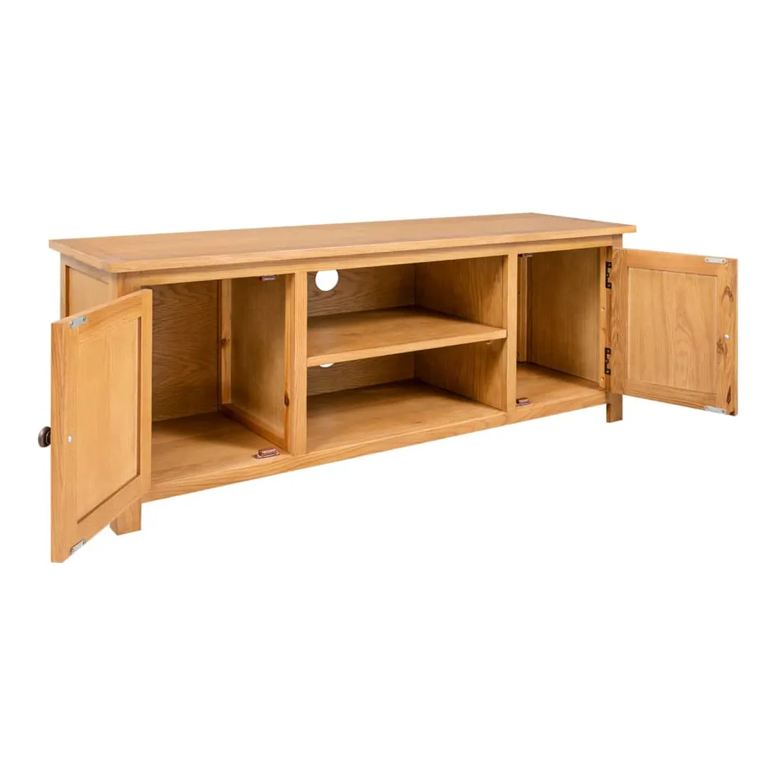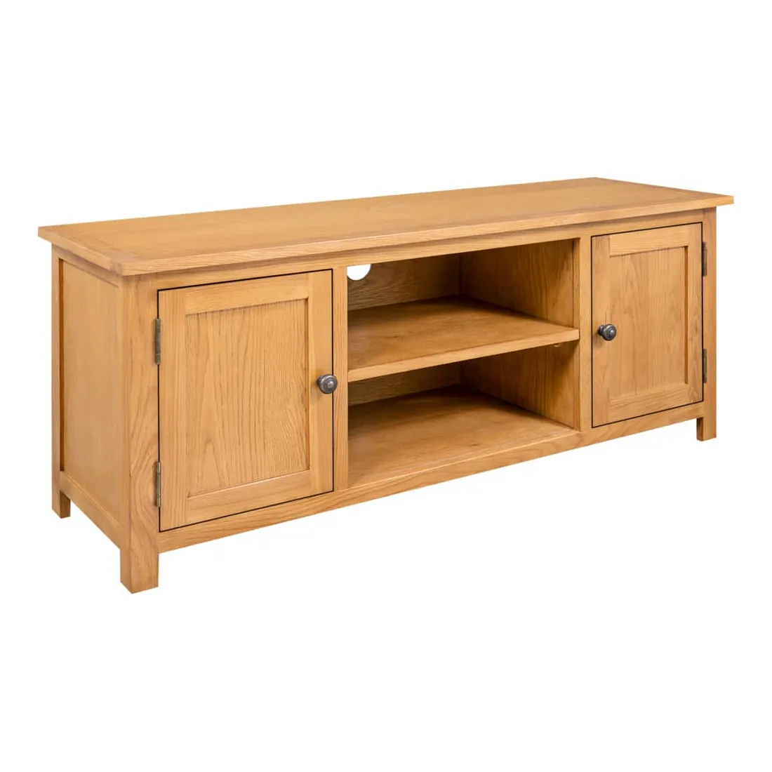 Ce meuble TV en bois dégage un charme rustique qui en fera un excellent supplément à votre salon. Ce meuble TV solide et robuste est fabriqué en chêne. Le dessus de table solide offre une surface stable et sécurisée sur laquelle vous pouvez placer votre téléviseur, un panier de fruits ou un vase ou d'autres objets décoratifs. Ce mobilier pour télévision comporte deux portes et deux compartiments ouverts, fournissant l'espace suffisant pour stocker vos appareils multimédias, livres et divers autres articles.
