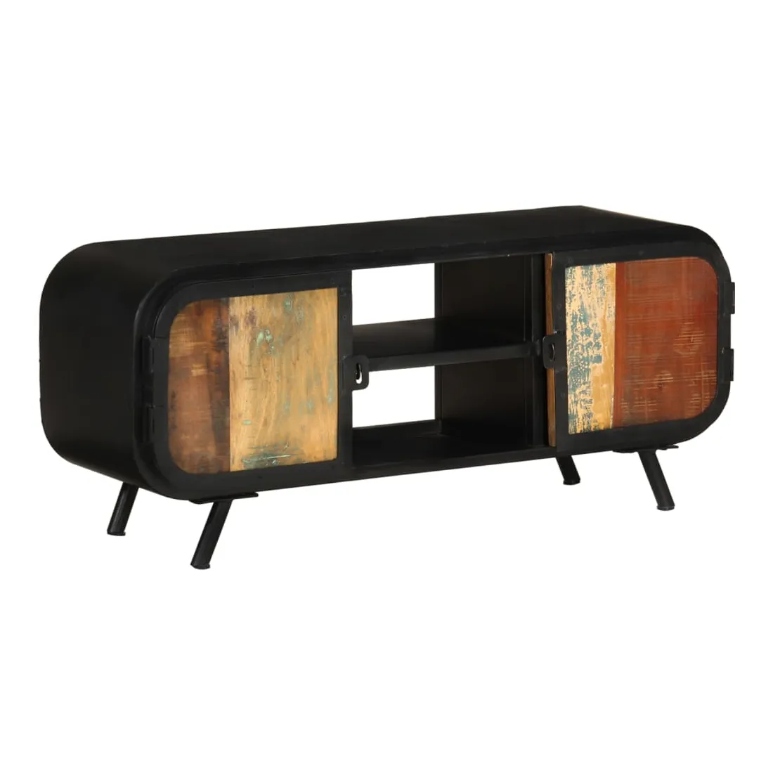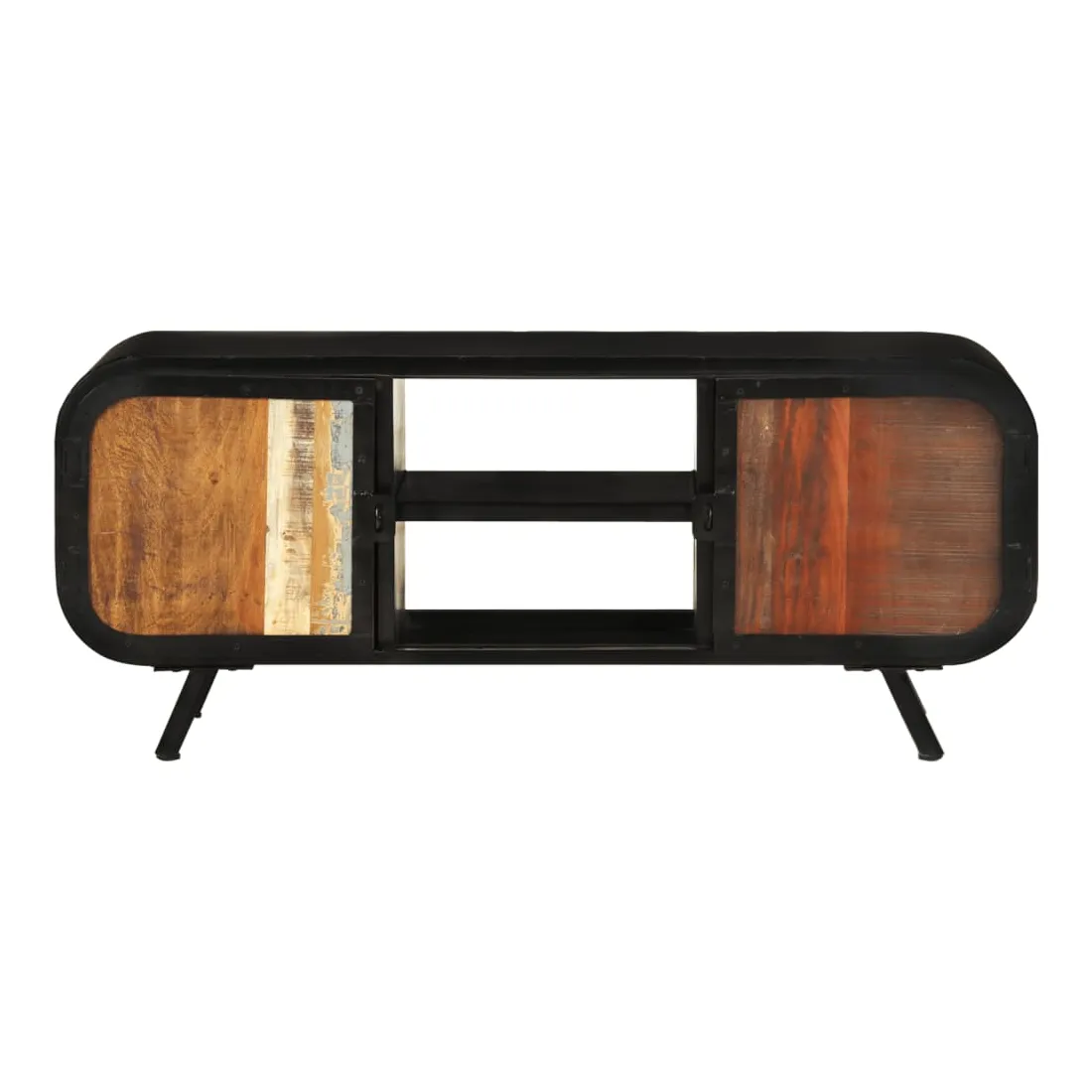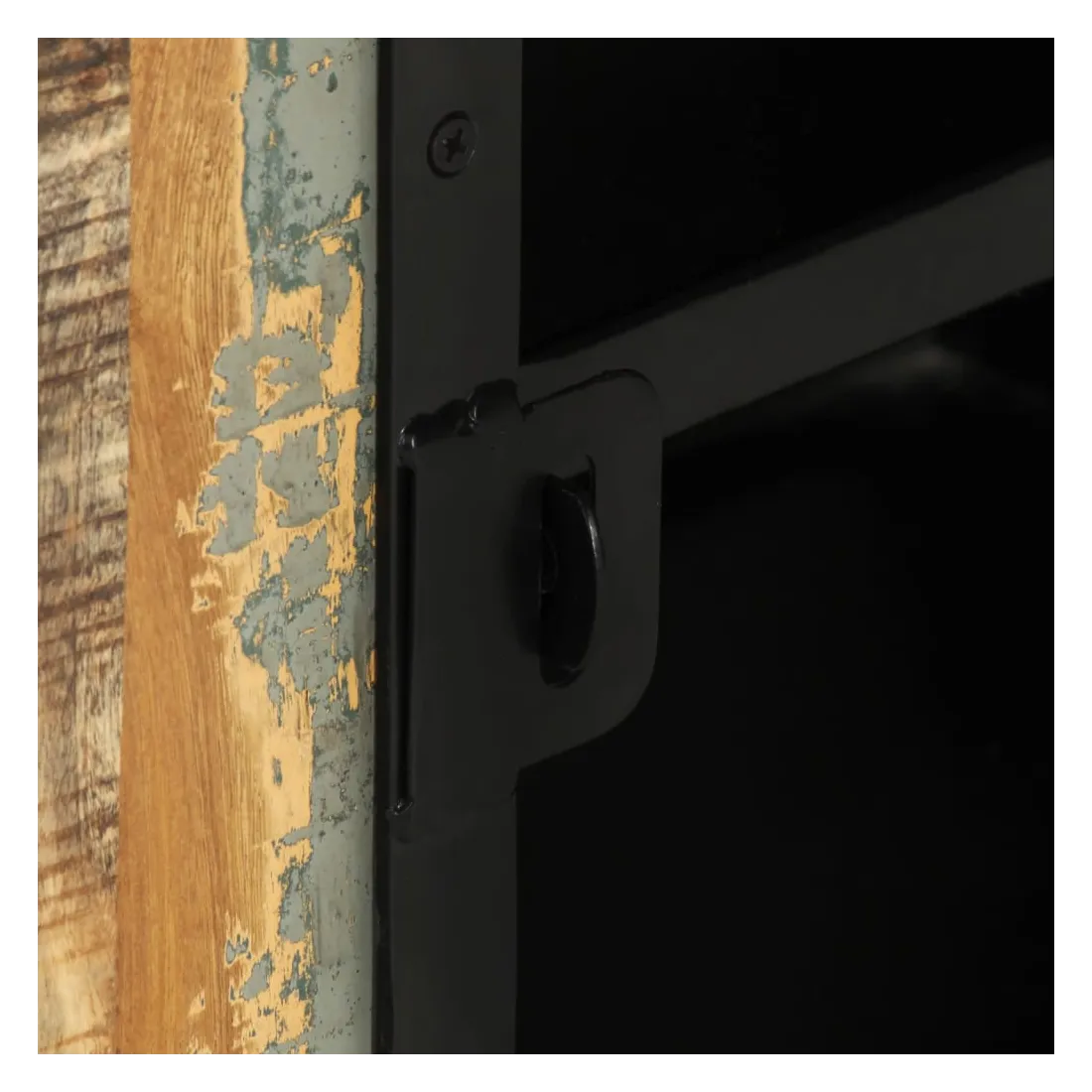 Ce meuble TV en bois de style industriel dégage un charme vintage et est un supplément intemporel à votre maison. Le meuble TV est fait à la main à partir de bois de récupération solide, une combinaison de bois récupérés dont le teck, le bois de manguier, le pin, le hêtre, etc. Ces bois sont recyclés à partir de vieux bâtiments tels que des usines, des hangars et des bateaux. Cela en fait une excellente option écologique dans la fabrication de meubles. Comme chaque pièce est faite à la main, les couleurs varient avec de nombreuses nuances de bleus, verts, crèmes et parfois oranges, rouges et roses révélées. Cela signifie même que chacun est unique ! De plus, l'armoire latérale offre suffisamment d'espace pour stocker des appareils multimédias, des supports multimédias et tout autre article.