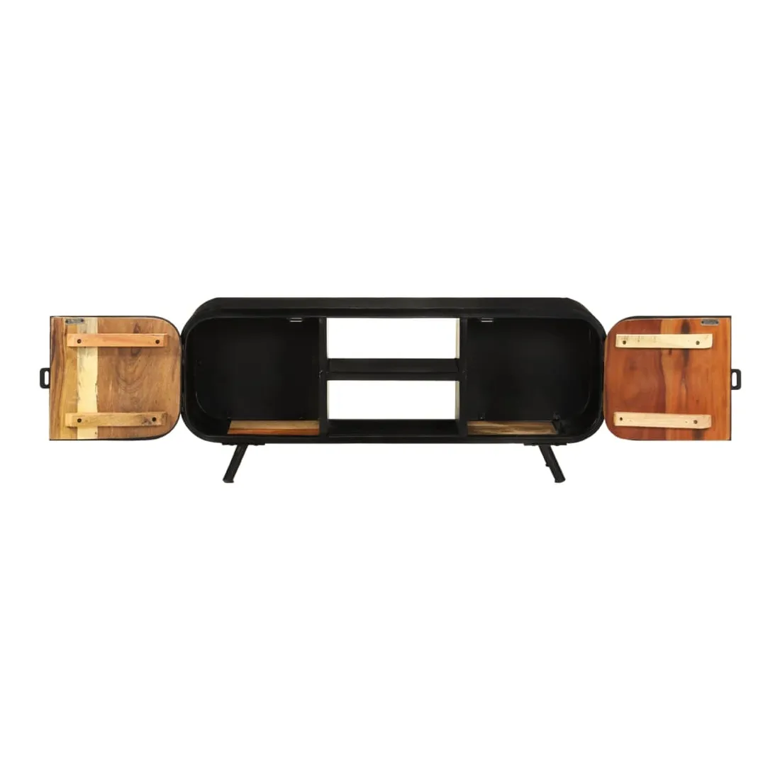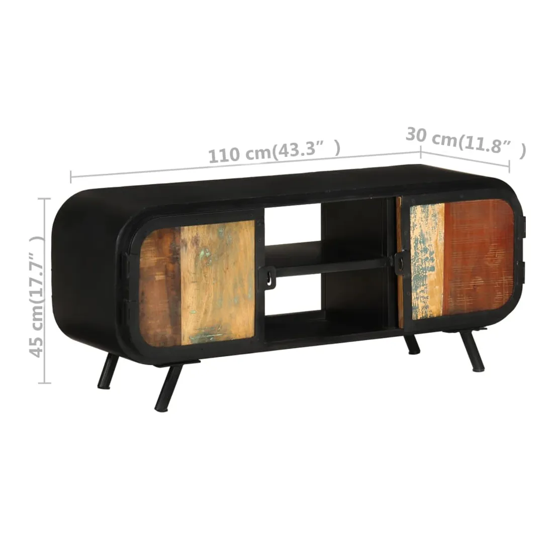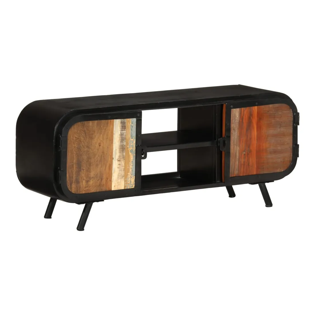 Ce meuble TV en bois de style industriel dégage un charme vintage et est un supplément intemporel à votre maison. Le meuble TV est fait à la main à partir de bois de récupération solide, une combinaison de bois récupérés dont le teck, le bois de manguier, le pin, le hêtre, etc. Ces bois sont recyclés à partir de vieux bâtiments tels que des usines, des hangars et des bateaux. Cela en fait une excellente option écologique dans la fabrication de meubles. Comme chaque pièce est faite à la main, les couleurs varient avec de nombreuses nuances de bleus, verts, crèmes et parfois oranges, rouges et roses révélées. Cela signifie même que chacun est unique ! De plus, l'armoire latérale offre suffisamment d'espace pour stocker des appareils multimédias, des supports multimédias et tout autre article.