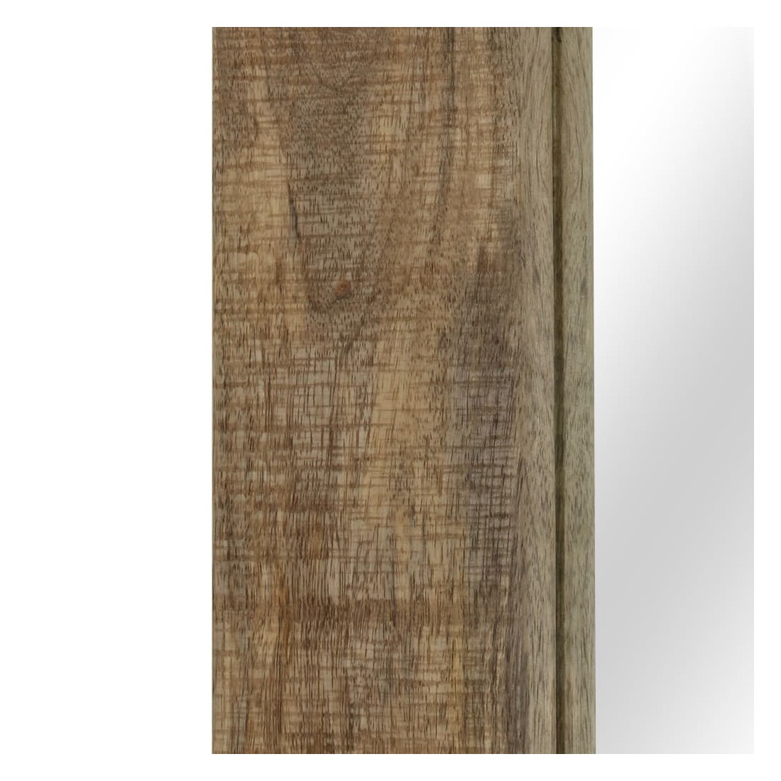 Ce miroir, doté d'un cadre en bois de manguier massif, dégage un charme vintage et sera une décoration parfaite et attrayante dans votre maison avec son design unique. Il peut être utilisé dans l'entrée ou la salle de bain. Le cadre est fait en bois de manguier massif, un bois stable, durable et magnfique. Le savoir-faire artisanal contribuee à son style rétro spectaculaire. Chaque étape du processus de fabrication est réalisée avec le plus grand soin, que ce soit le polissage, la peinture ou le laquage. Le savoir-faire artisanal et les beaux grains de bois rendent chaque meuble unique et légèrement différent du suivant. L'article est déjà assemblé. Aucun assemblage n'est requis. Remarque importante : les grains et les couleurs du bois peuvent varier d'une pièce à l'autre, ce qui rend chacun de nos miroirs unique ; la livraison est aléatoire.
