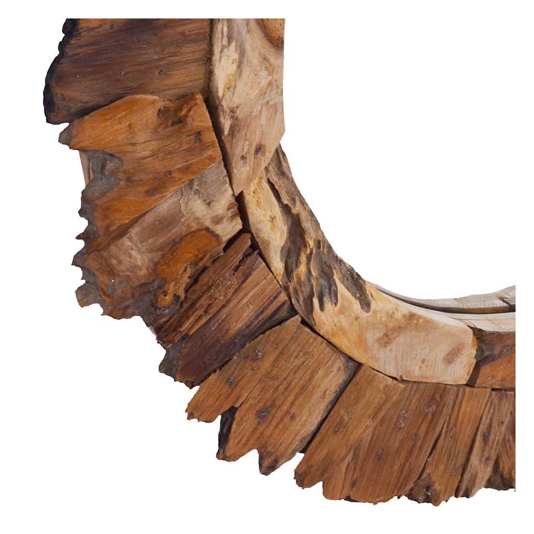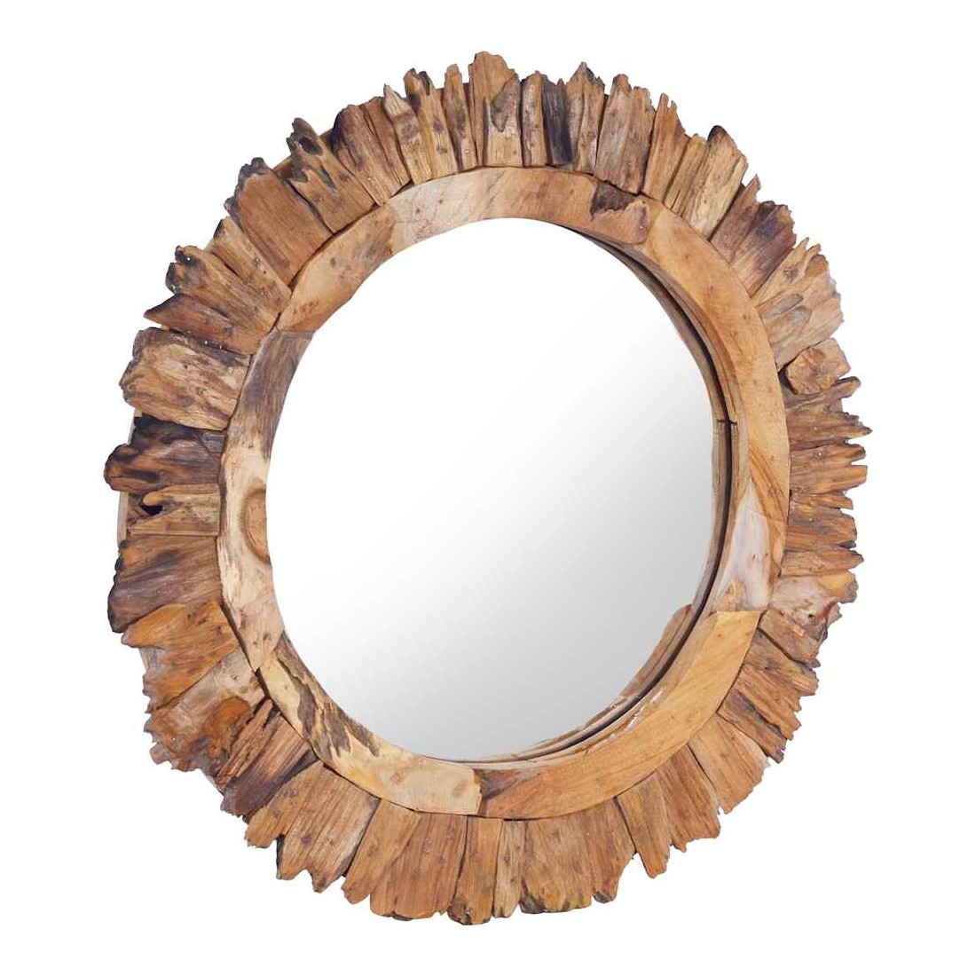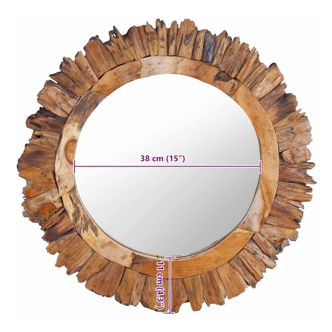 Notre miroir en teck est plus qu'un objet pratique quotidien; c'est aussi une décoration attrayante pour votre maison. Le cadre du miroir avec design à pétales est fabriqué à la main de bois de teck naturel, ce qui ajoute au style rustique du miroir. Il sera parfait dans n’importe quelle pièce de la maison et peut également être utilisé dans la salle de bain. Le miroir est prêt à être monté au mur grâce au crochet déjà installé sur la planche dorsale. Remarque importante : la couleur et le motif du bois peuvent varier d'une pièce à l'autre, rendant chaque pièce unique ; la livraison est aléatoire.