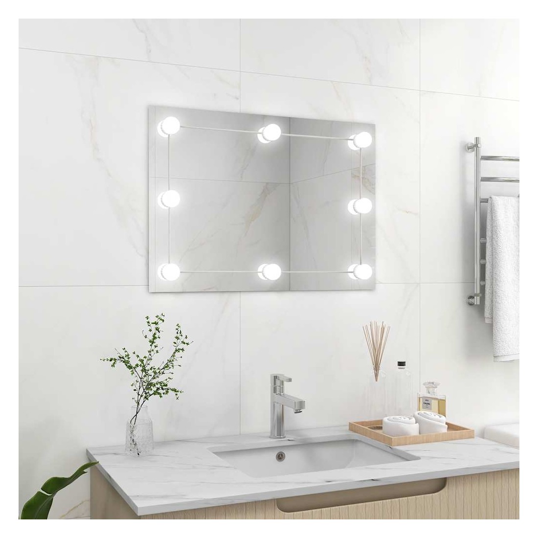 Miroir mural sans cadre avec lampes LED Rectangulaire Verre