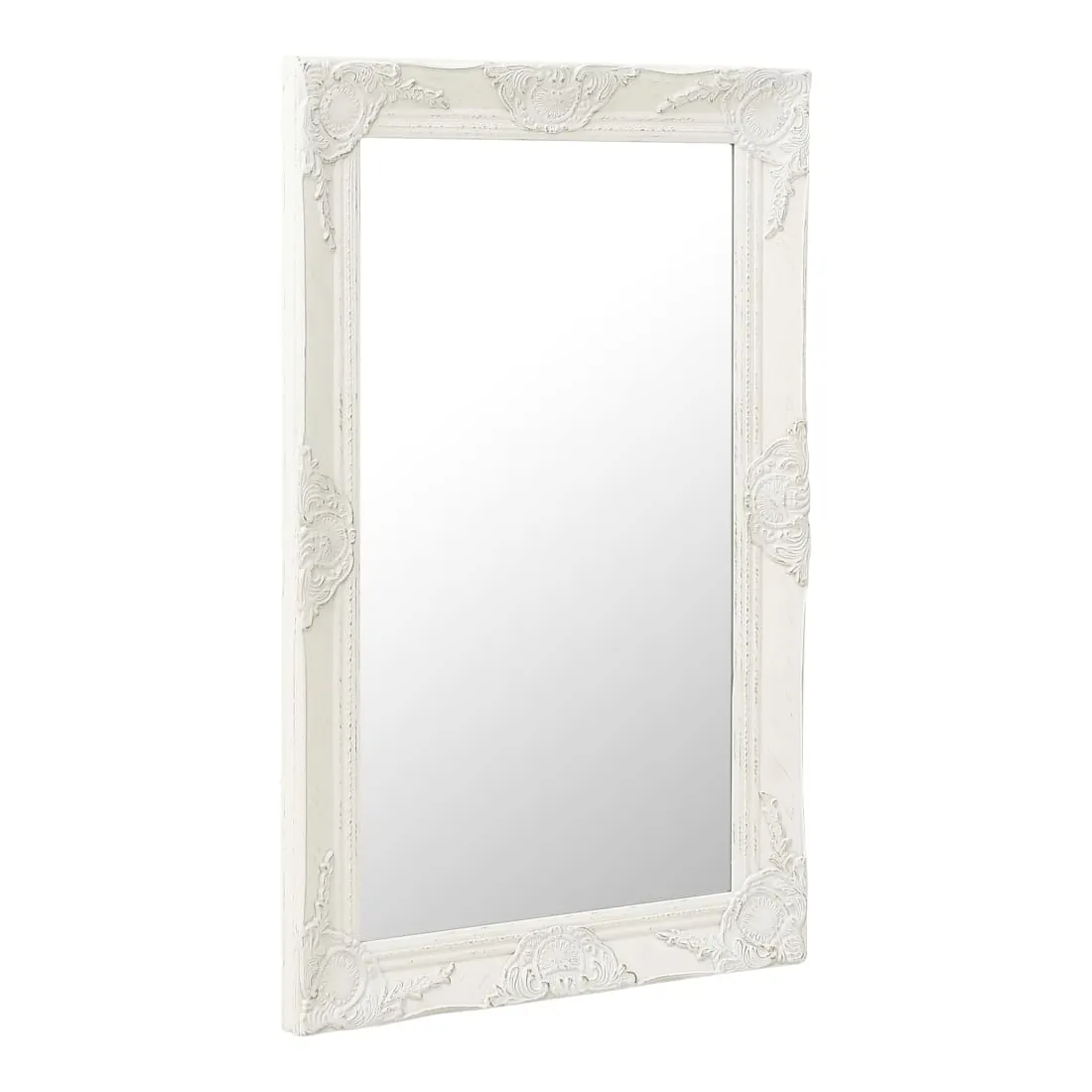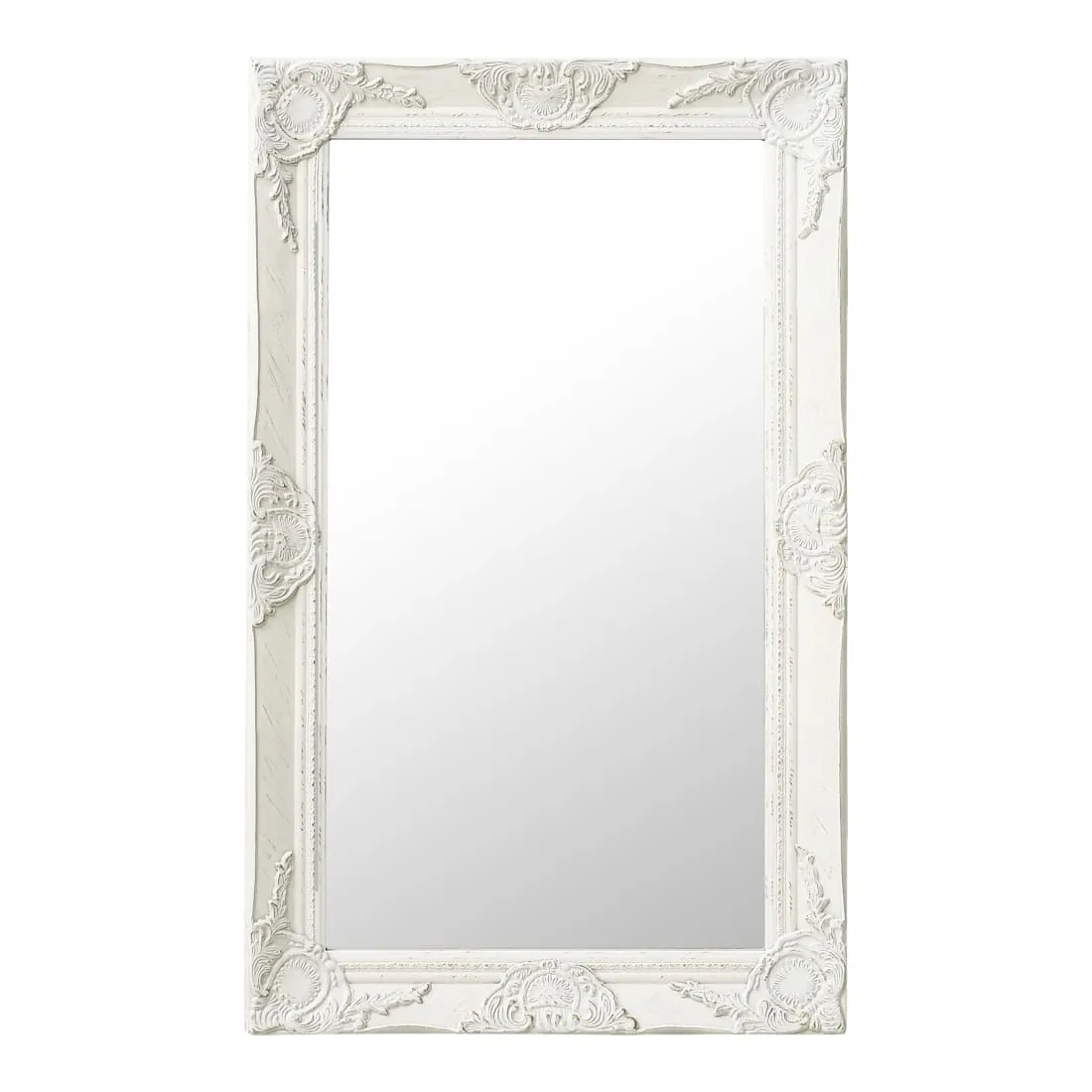 Ce miroir mural magnifique avec son cadre ornementé crée une atmosphère baroque dans votre dressing. Ce miroir à l'aspect ancien présente un cadre en bois robuste qui est habilement travaillé pour arborer des motifs baroques. De plus, le bord conique donne au miroir un aspect unique. Le miroir peut être prêt à être fixé au mur grâce aux crochets déjà installés sur le panneau arrière.