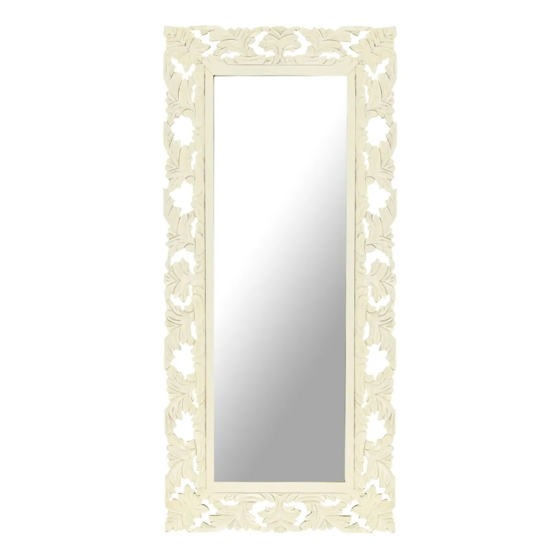 Ce miroir en bois de manguier massif est plus qu'un objet pratique au quotidien, c'est également une jolie décoration pour votre maison. Le bois de manguier massif est un bois dur tropical. Il a la force de soutenir le poids et résiste également à l'usure du temps. De plus, le savoir-faire exquis et les beaux grains de bois rendent chaque pièce de miroir en bois légèrement différente l'une de l'autre. Le motif sculpté à la main ajoute à la beauté du miroir. Remarque importante : les couleurs et les grains de bois peuvent varier d'une pièce à l'autre, ce qui rend chaque pièce unique et légèrement différente l'une de l'autre ; la livraison est aléatoire.