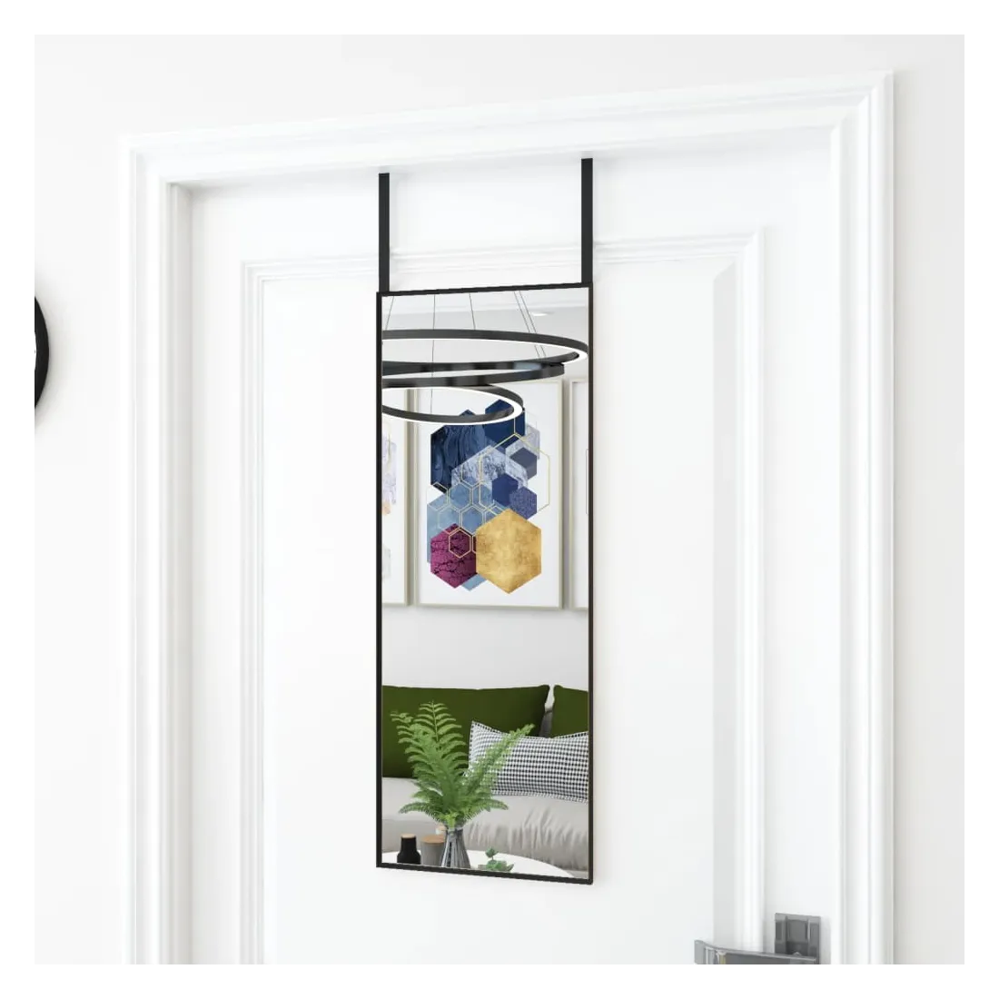 Ajoutez une touche d'esthétique minimaliste à votre décor avec ce miroir de porte pratique ! Il convient à la chambre à coucher, au salon, au couloir, partout où un miroir pourrait être nécessaire. Cadre robuste et stable : le cadre en aluminium assure robustesse et stabilité.Hauteur réglable : les crochets de porte inclus permettent différentes hauteurs du haut de la porte pour assurer une vue parfaite de vous-même.Fonction d'économie d'espace : en le plaçant sur la porte ou sur le mur, le miroir de dressing avec son design simple et précis peut aider à économiser de l'espace.Facile à installer : aucun assemblage requis. Grâce aux deux crochets inclus, vous pouvez facilement suspendre le miroir mural classique sur votre porte.