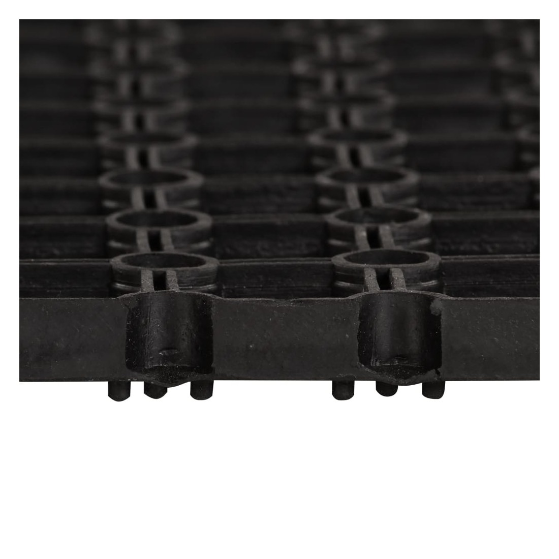 Notre tapis en caoutchouc peut être facilement utilisé comme revêtement de sol intérieur ou extérieur. Il peut être utilisé comme paillasson, mais aussi pour un patio, un garage, un atelier, une étable, un enclos ou une voiture. Vous pouvez connecter facilement le tapis à un autre pour obtenir une forme ou une taille souhaitée avec des connecteurs (non inclus). Fabriqué en caoutchouc à 100%, le tapis est résistant aux intempéries, antidérapant et facile à nettoyer.