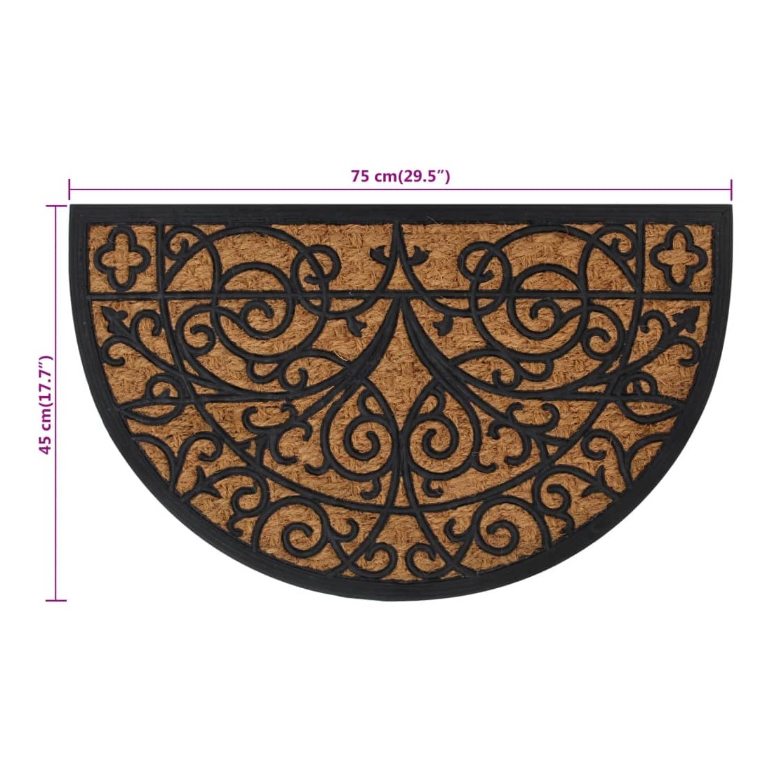 Tapis de porte demi-rond 45x75 cm caoutchouc et fibre de coco