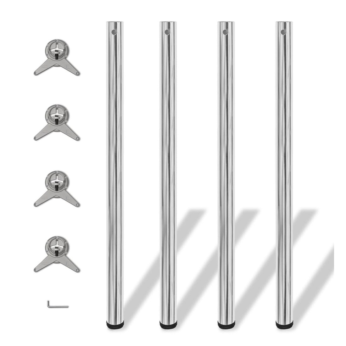 - L'ensemble de pieds peut être utilisé comme pieds de tables de bars, pieds de tables de pétit-déjeuner, pieds de plans de travail, pieds de bureaux, etc.