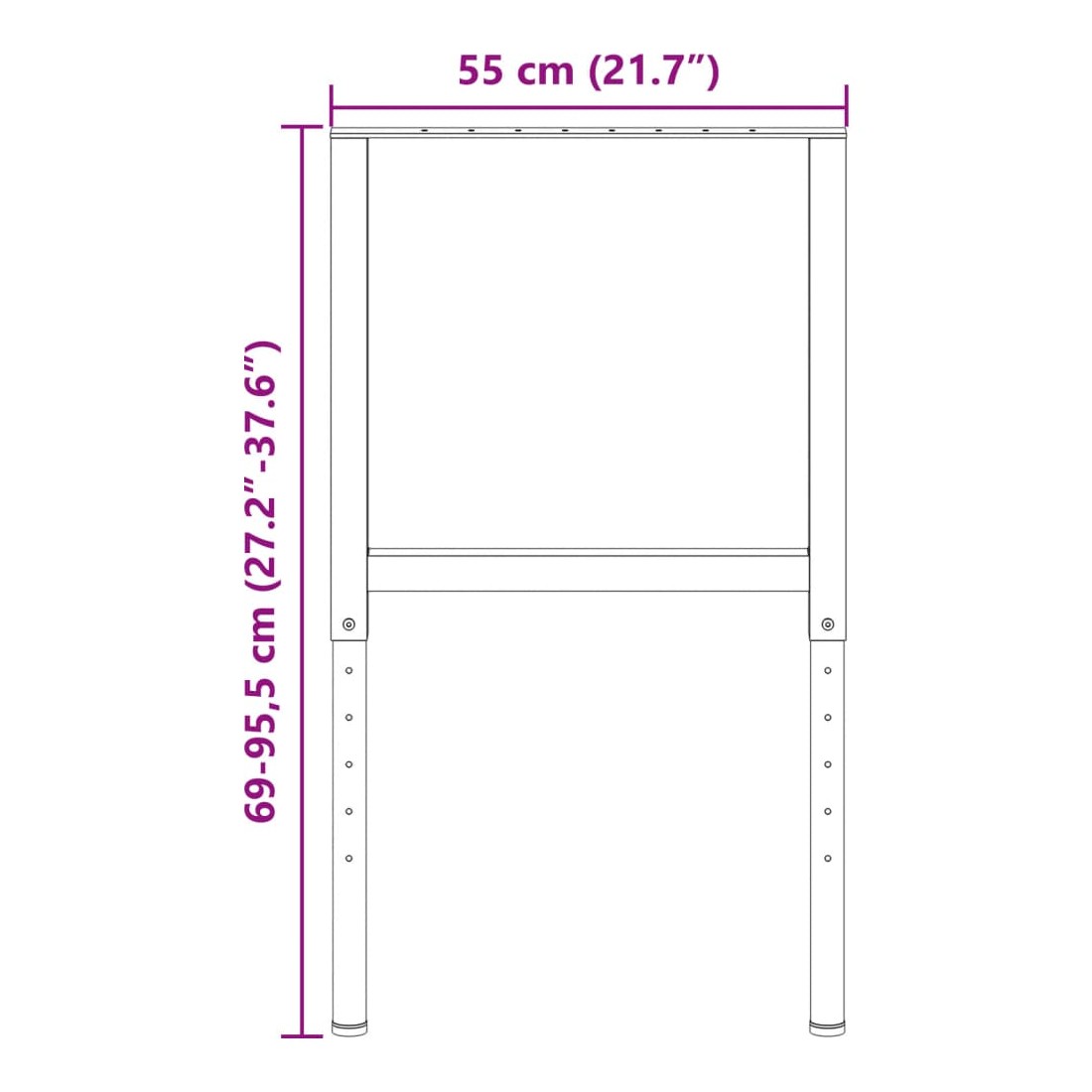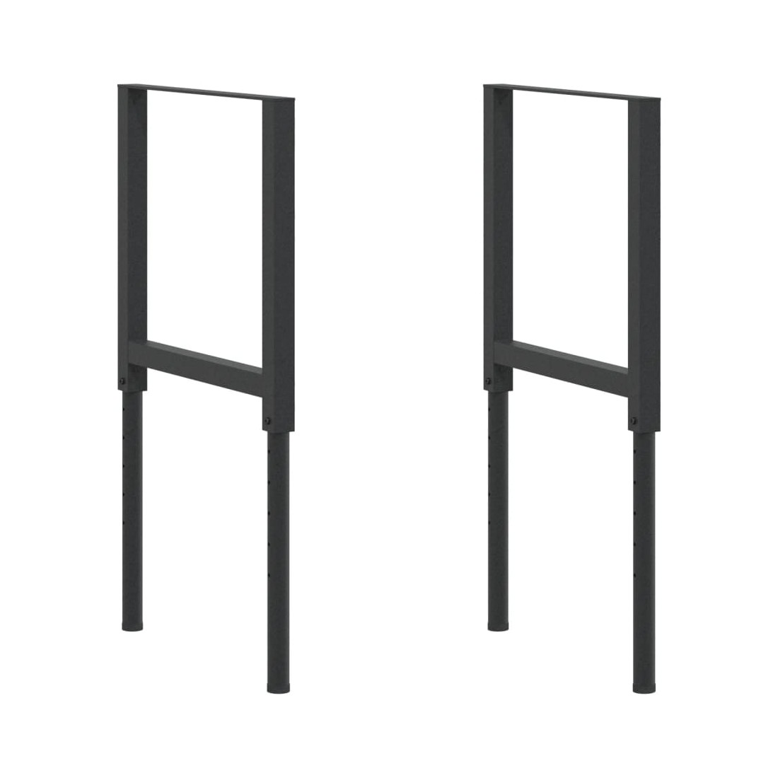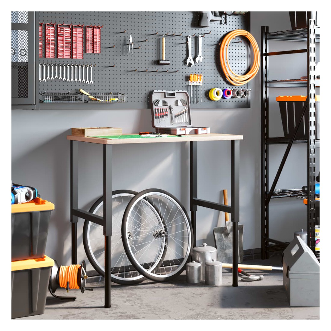 Améliorez votre atelier ou garage avec cette paire de cadres de bancs de travail en métal réglables, offrant solidité, polyvalence et design professionnel. Idéal pour les amateurs, artisans et passionnés de bricolage recherchant un espace de travail stable et fonctionnel.Construction durable : Fabriqués en métal avec finition en poudre, ces cadres garantissent solidité et résistance à une utilisation intensive dans les ateliers et garages.Hauteur réglable : Ajustez facilement la hauteur de 69 cm à 95,5 cm pour adapter le banc à des projets de menuiserie, montage, artisanat ou bricolage.Personnalisation DIY : Les trous pré-percés permettent de fixer rapidement votre plateau préféré, créant un espace de travail sur mesure selon vos besoins.Design élégant : Finition noire professionnelle apportant un aspect moderne et ordonné. Chaque set comprend deux cadres et tout le matériel nécessaire pour un montage immédiat. Optimisez votre atelier ou garage avec ce set de cadres de bancs réglables, polyvalents et durables pour une performance pratique et prolongée.