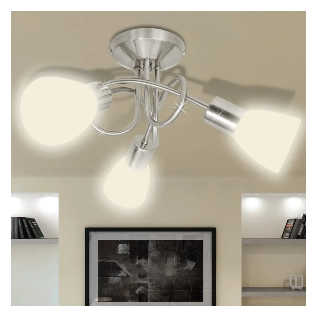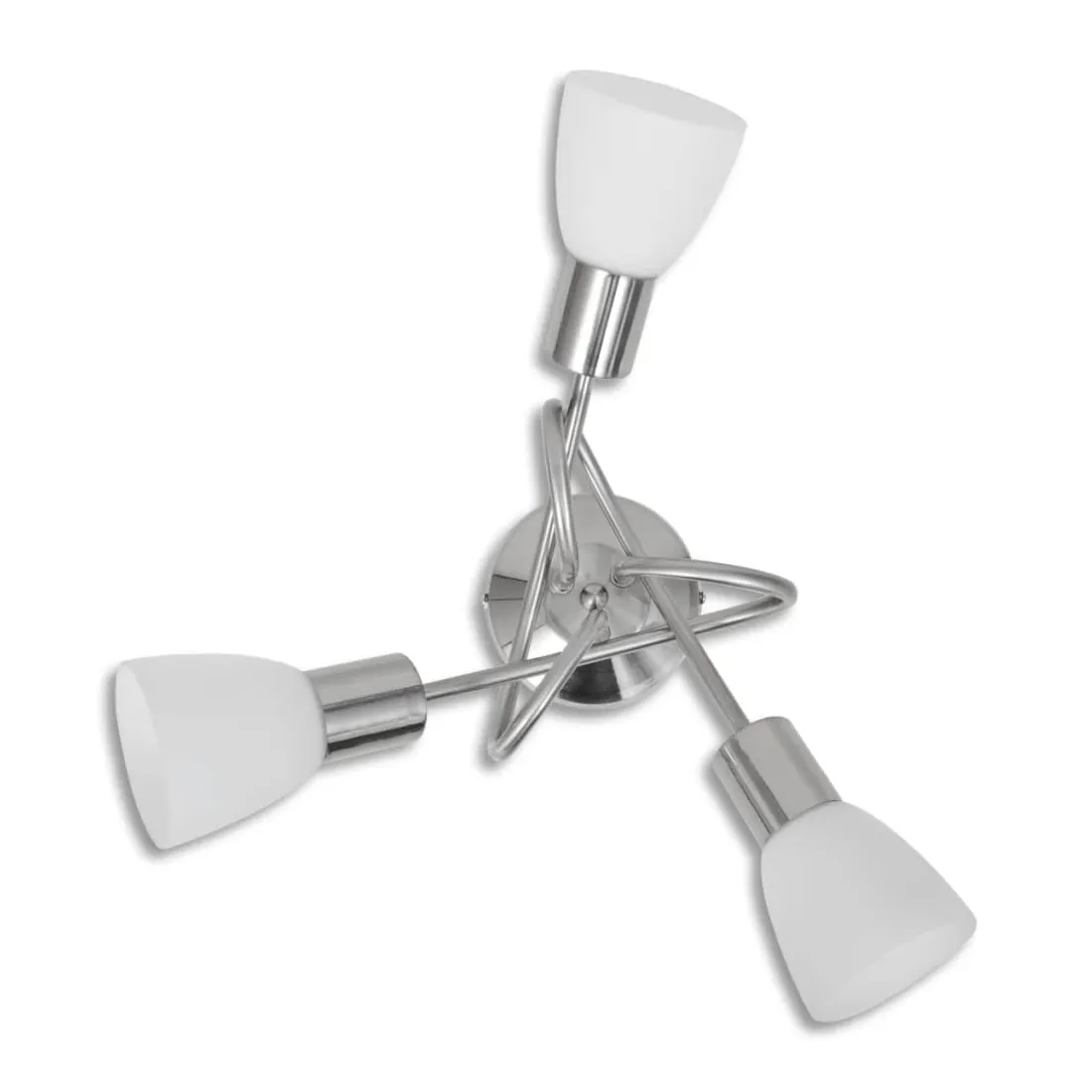 Ce plafonnier unique, avec trois abat-jour en verre, présente un design moderne. La finition en nickel satiné donne à cette lampe un style contemporain - parfaite pour le salon ou la chambre à coucher de tout style. Cette lampe peut être facilement montée sur n'importe quel plafond avec une base en métal de haute qualité. Trois tubes métalliques emmêlés présentent un look chic. Une lumière merveilleuse passera à travers ces abat-jour de verre délicats, illuminant chaque coin de la pièce. Ce plafonnier exclusif se distingue par sa simplicité agréable. Cette lampe convient à trois ampoules E14. Veuillez noter que les ampoules ne sont pas incluses dans la livraison.