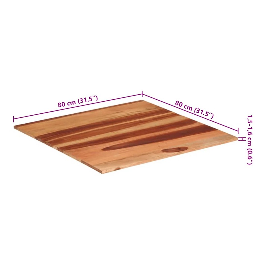 Dessus de table bois massif d'acacia 15-16 mm 80x80 cm