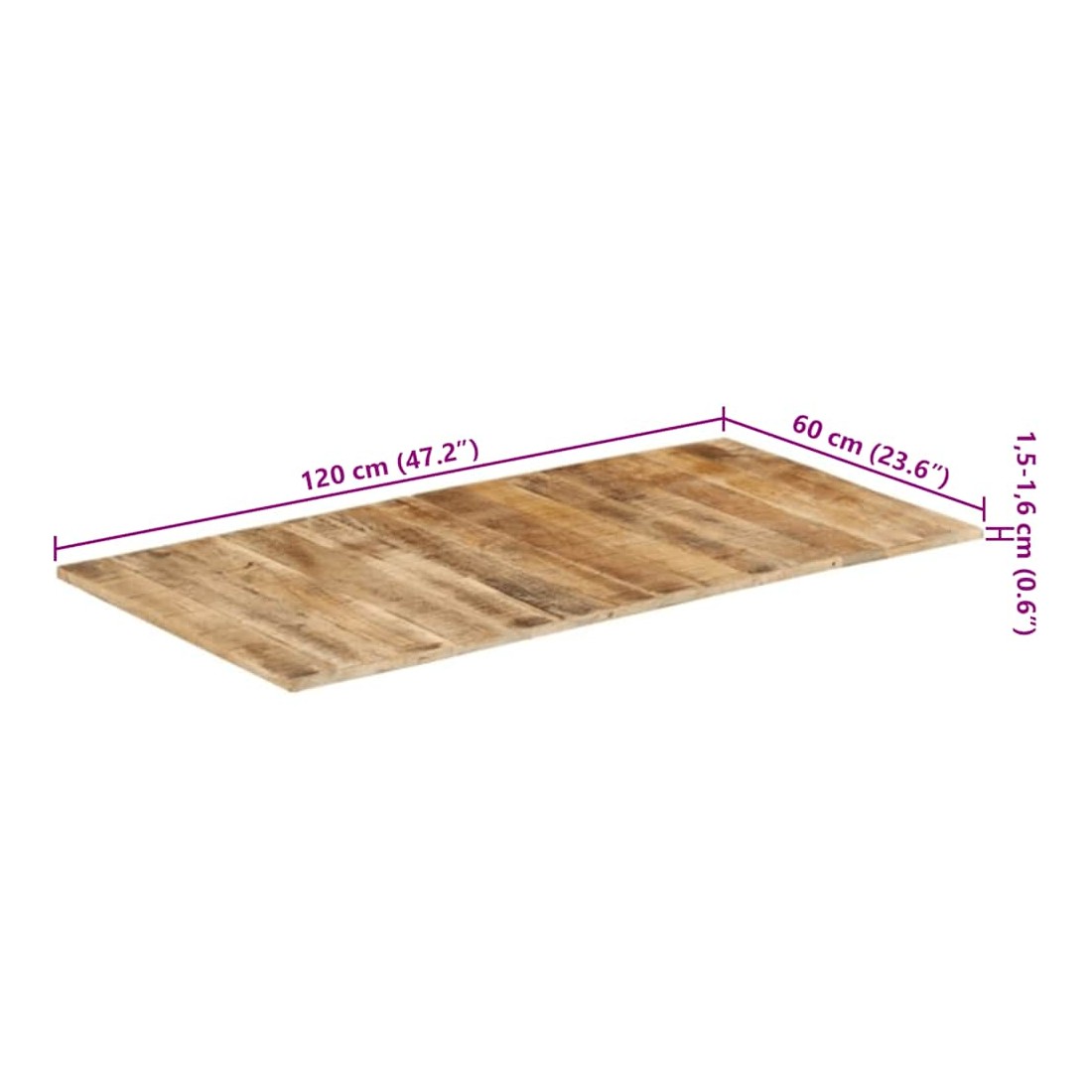 Dessus de table bois de manguier solide 15-16 mm 120x60 cm