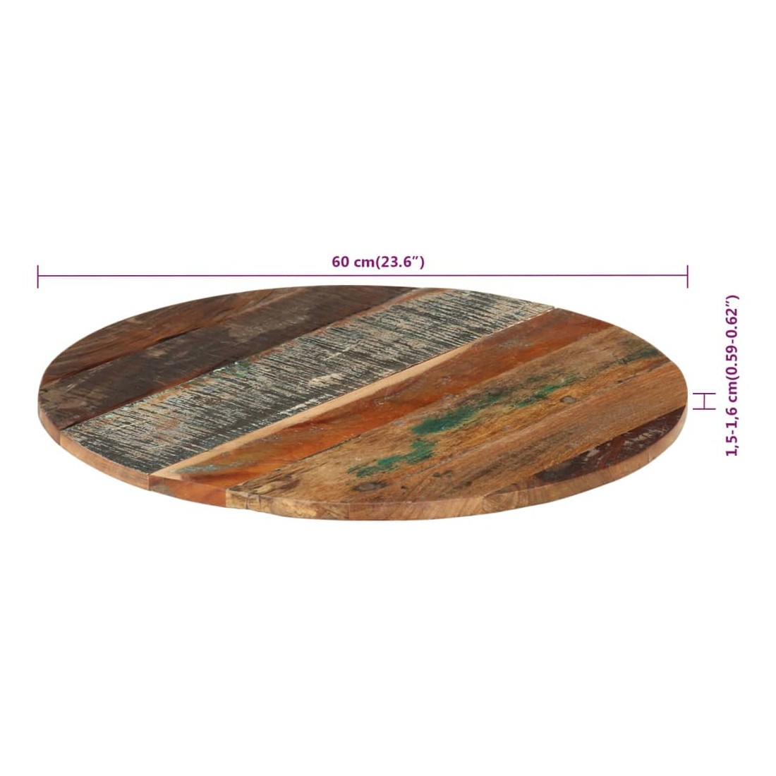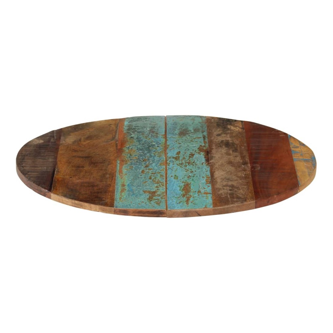 Ce dessus en bois, avec un look simple et épuré, ajoute un charme rustique à vos espaces intérieurs. Sa construction en bois massif le rend stable et sécurisé. Le dessus de table de remplacement, fabriqué en bois massif de récupération tropical, est fabriqué à partir de bois récupéré provenant d'anciennes structures telles que des entrepôts, des granges, des remises, des usines et des manoirs. Le bois est un mélange de bois de manguier, de bois franc, de teck, etc., avec les caractéristiques de différents bois. Les signes d'usure et la structure de grain visible donnent à chaque pièce sa propre histoire et un look unique. Chaque étape du processus est réalisée avec un soin exceptionnel, qu'il s'agisse du polissage, de la peinture ou du laquage. De plus, ce dessus de table en bois massif peut être utilisé pour les tables basses, les tables d'appoint, les tables de bar, les tables pour téléphone, les tables consoles, les tables de chevet, les étagères ou comme planche de meubles. Vous pouvez également combiner ce dessus de table avec n'importe quel pied stylisé selon vos besoins spécifiques. Le dessus de table est facile à nettoyer avec un chiffon humide.Remarque importante : les couleurs varient d'une pièce à l'autre, rendant chaque pièce unique. La livraison est aléatoire, garantissant l'exclusivité et l'individualité de votre produit.