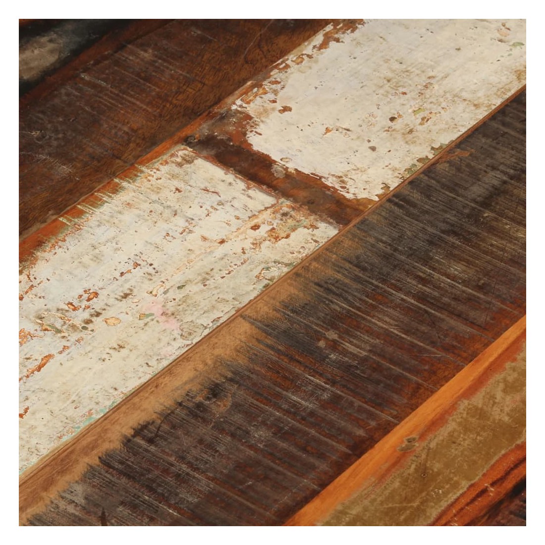 Ce dessus en bois, avec un look simple et épuré, ajoute un charme rustique à vos espaces intérieurs. Sa construction en bois massif le rend stable et sécurisé. Le dessus de table de remplacement, fabriqué en bois massif de récupération tropical, est fabriqué à partir de bois récupéré provenant d'anciennes structures telles que des entrepôts, des granges, des remises, des usines et des manoirs. Le bois est un mélange de bois de manguier, de bois franc, de teck, etc., avec les caractéristiques de différents bois. Les signes d'usure et la structure de grain visible donnent à chaque pièce sa propre histoire et un look unique. Chaque étape du processus est réalisée avec un soin exceptionnel, qu'il s'agisse du polissage, de la peinture ou du laquage. De plus, ce dessus de table en bois massi