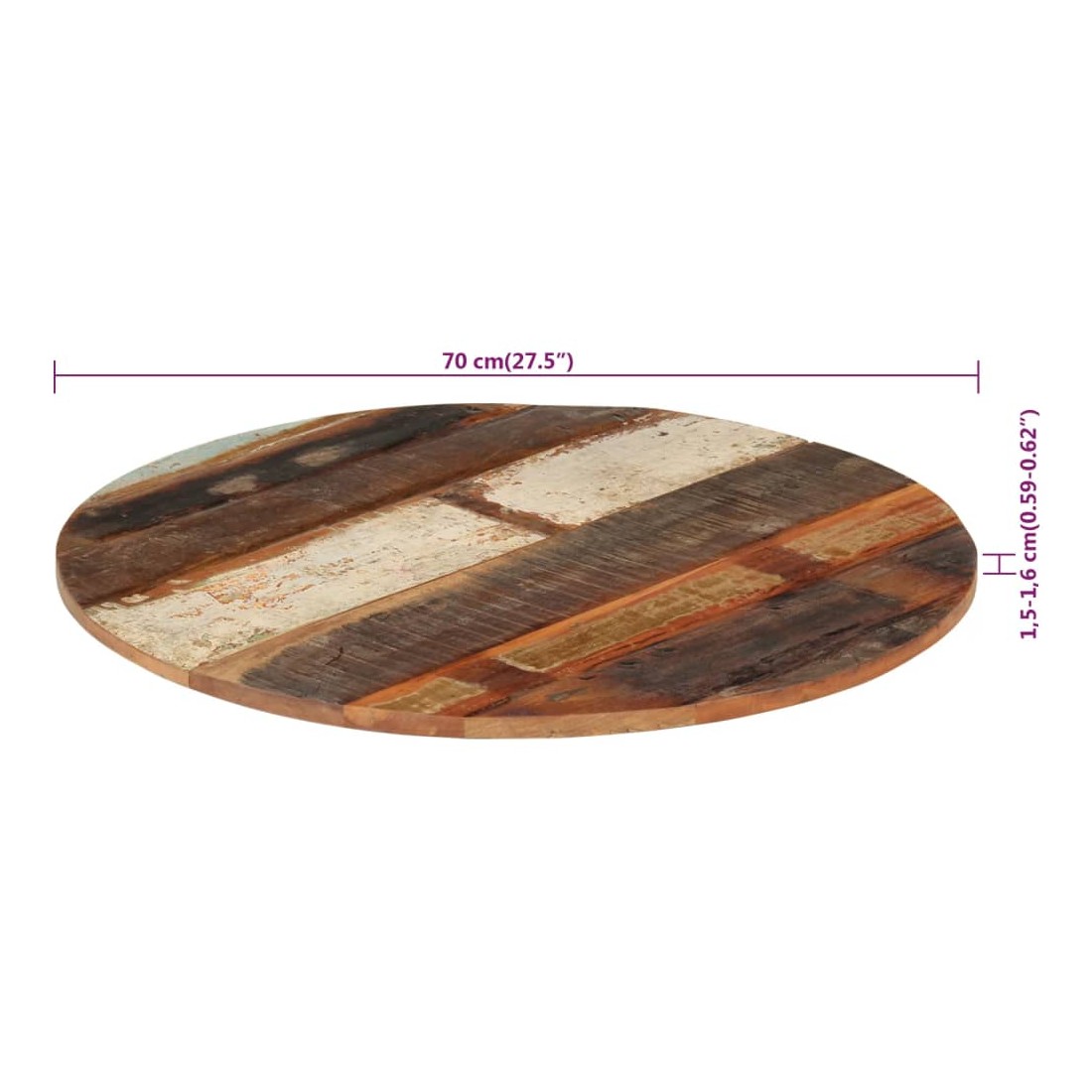 Dessus de table rond 70 cm 15-16 mm Bois de récupération