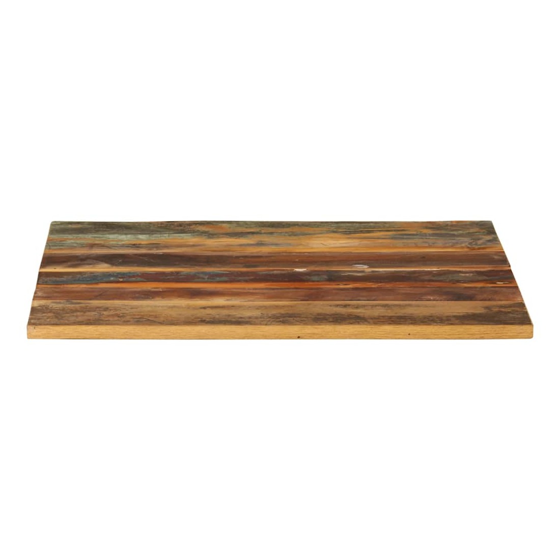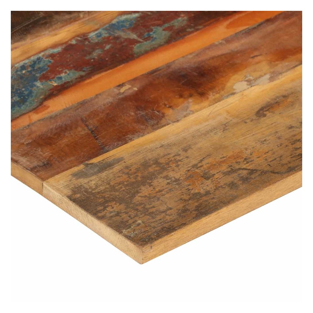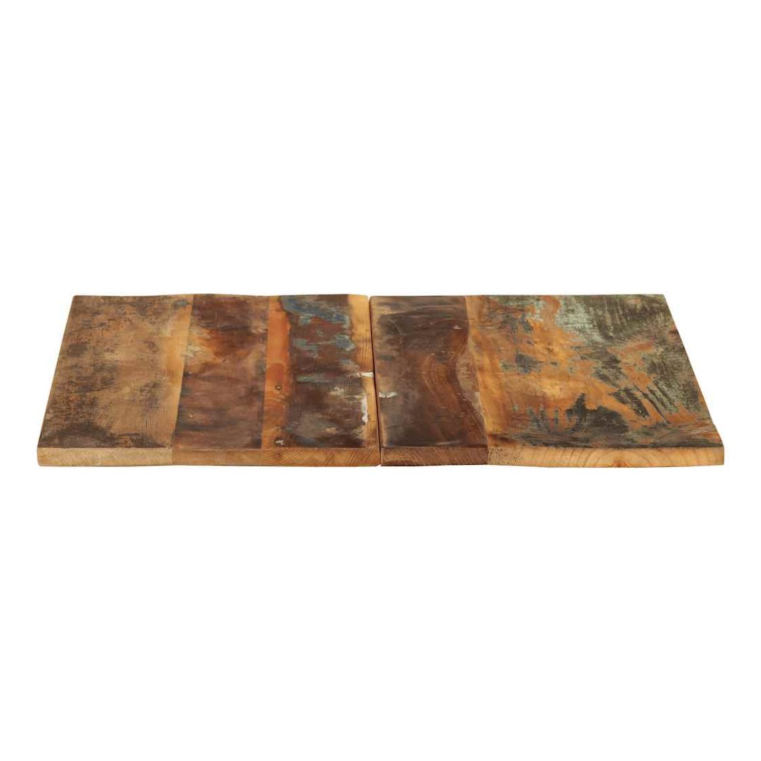 Ce dessus en bois, avec un look simple et épuré, ajoute un charme rustique à vos espaces intérieurs. Sa construction en bois massif le rend stable et sécurisé. Le dessus de table de remplacement, fabriqué en bois massif de récupération tropical, est fabriqué à partir de bois récupéré provenant d'anciennes structures telles que des entrepôts, des granges, des remises, des usines et des manoirs. Le bois est un mélange de bois de manguier, de bois franc, de teck, etc., avec les caractéristiques de différents bois. Les signes d'usure et la structure de grain visible donnent à chaque pièce sa propre histoire et un look unique. Chaque étape du processus est réalisée avec un soin exceptionnel, qu'il s'agisse du polissage, de la peinture ou du laquage. De plus, ce dessus de table en bois massif peut être utilisé pour les tables basses, les tables d'appoint, les tables de bar, les tables pour téléphone, les tables consoles, les tables de chevet, les étagères ou comme planche de meubles. Vous pouvez également combiner ce dessus de table avec n'importe quel pied stylisé selon vos besoins spécifiques. Le dessus de table est facile à nettoyer avec un chiffon humide.Remarque importante : les couleurs varient d'une pièce à l'autre, rendant chaque pièce unique. La livraison est aléatoire, garantissant l'exclusivité et l'individualité de votre produit.