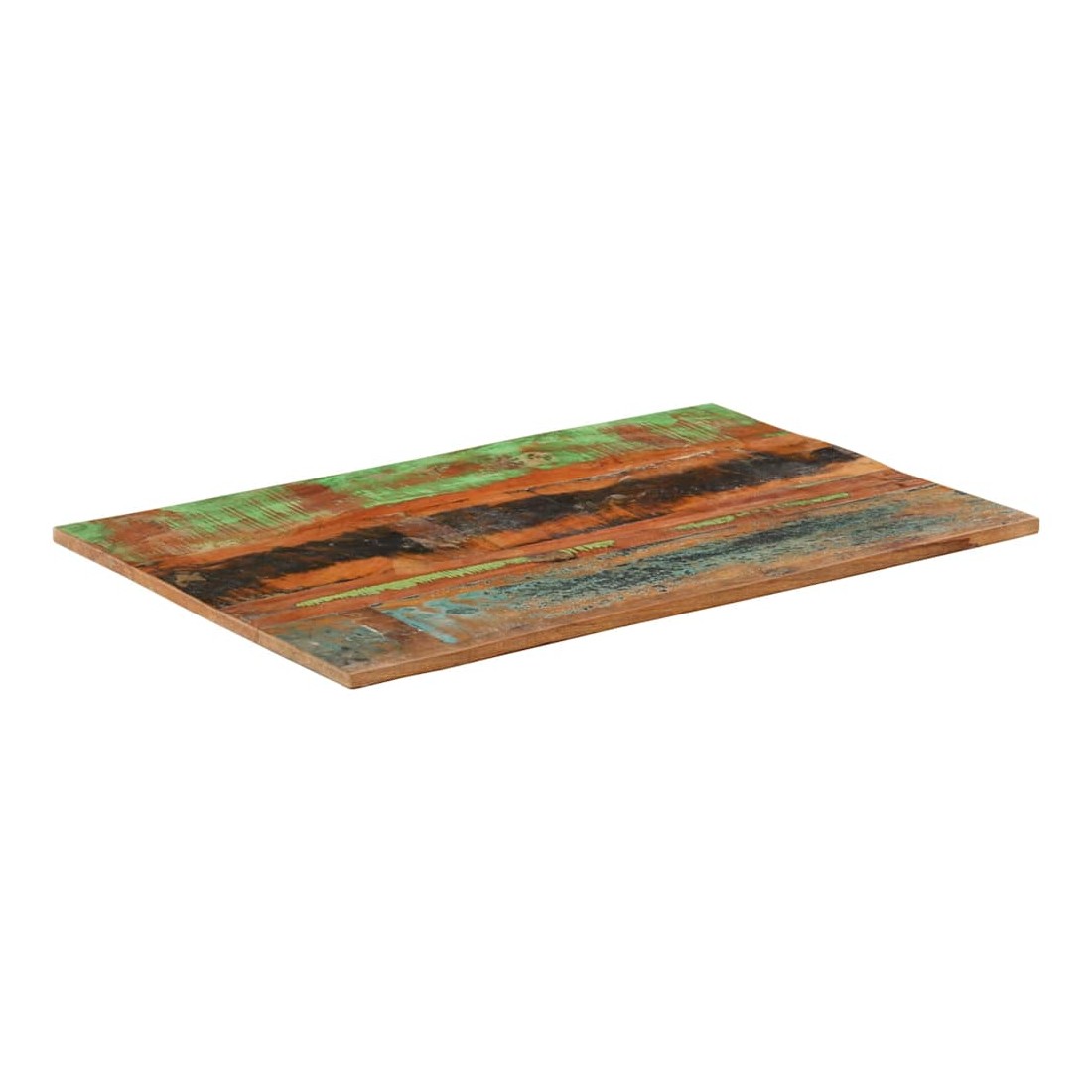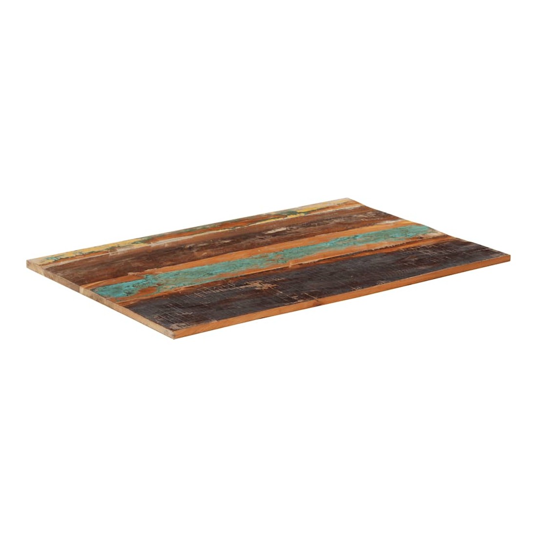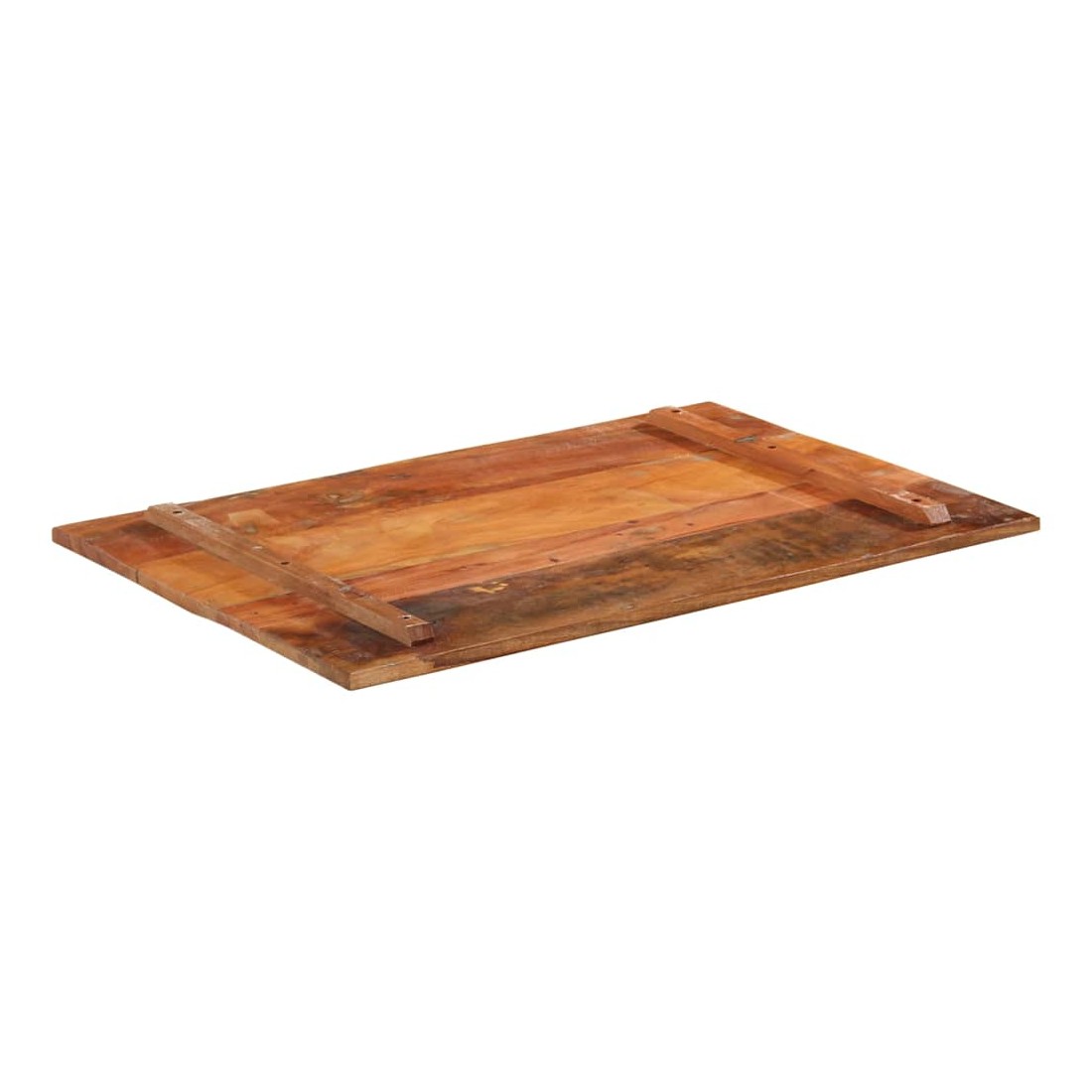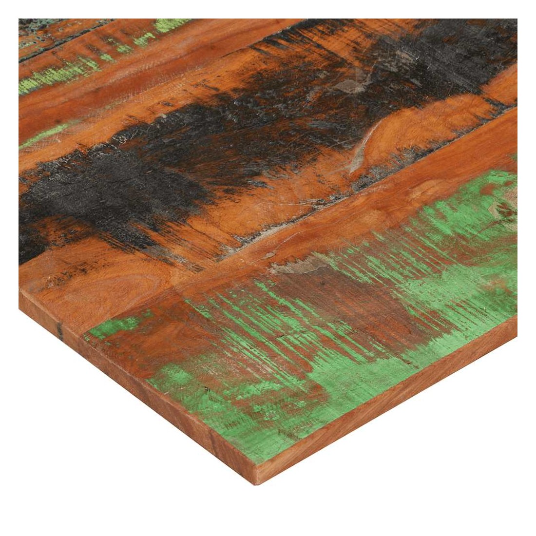 Ce dessus en bois, avec un look simple et épuré, ajoute un charme rustique à vos espaces intérieurs. Sa construction en bois massif le rend stable et sécurisé. Le dessus de table de remplacement, fabriqué en bois massif de récupération tropical, est fabriqué à partir de bois récupéré provenant d'anciennes structures telles que des entrepôts, des granges, des remises, des usines et des manoirs. Le bois est un mélange de bois de manguier, de bois franc, de teck, etc., avec les caractéristiques de différents bois. Les signes d'usure et la structure de grain visible donnent à chaque pièce sa propre histoire et un look unique. Chaque étape du processus est réalisée avec un soin exceptionnel, qu'il s'agisse du polissage, de la peinture ou du laquage. De plus, ce dessus de table en bois massif peut être utilisé pour les tables basses, les tables d'appoint, les tables de bar, les tables pour téléphone, les tables consoles, les tables de chevet, les étagères ou comme planche de meubles. Vous pouvez également combiner ce dessus de table avec n'importe quel pied stylisé selon vos besoins spécifiques. Le dessus de table est facile à nettoyer avec un chiffon humide. Remarque importante : les couleurs varient d'une pièce à l'autre, rendant chaque pièce unique. La livraison est aléatoire, garantissant l'exclusivité et l'individualité de votre produit.