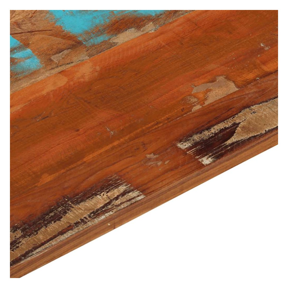 Ce dessus en bois, avec un look simple et épuré, ajoute un charme rustique à vos espaces intérieurs. Sa construction en bois massif le rend stable et sécurisé. Le dessus de table de remplacement, fabriqué en bois massif de récupération tropical, est fabriqué à partir de bois récupéré provenant d'anciennes structures telles que des entrepôts, des granges, des remises, des usines et des manoirs. Le bois est un mélange de bois de manguier, de bois franc, de teck, etc., avec les caractéristiques de différents bois. Les signes d'usure et la structure de grain visible donnent à chaque pièce sa propre histoire et un look unique. Chaque étape du processus est réalisée avec un soin exceptionnel, qu'il s'agisse du polissage, de la peinture ou du laquage. De plus, ce dessus de table en bois massi