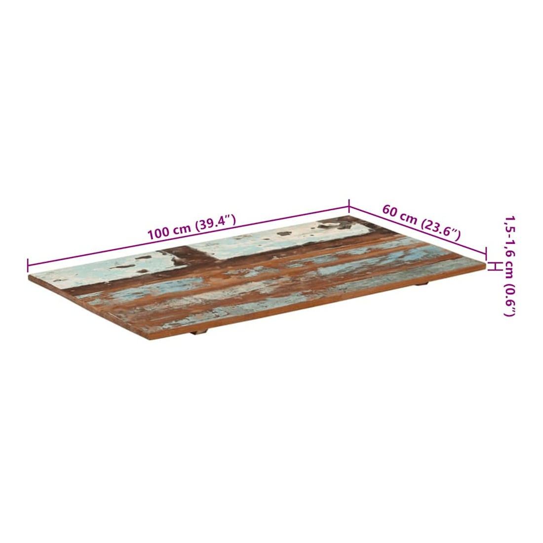 Dessus de table rectangulaire 60x100 cm 15-16 mm Bois récupéré
