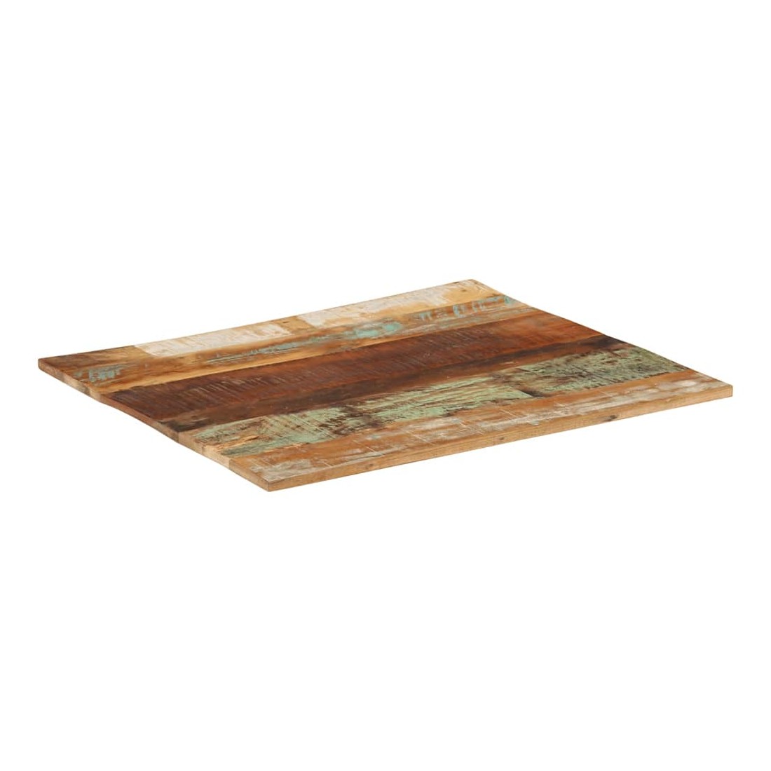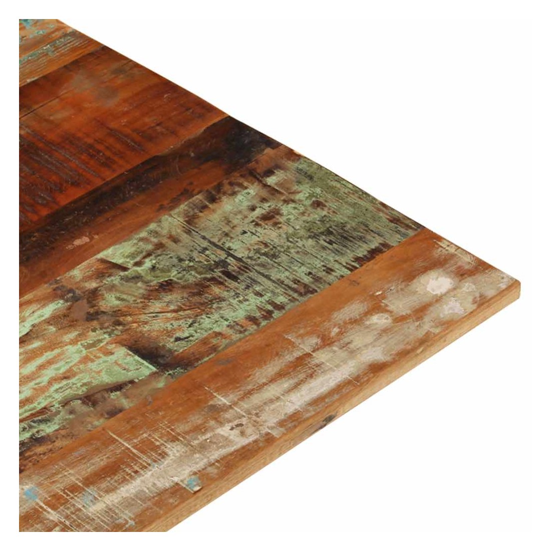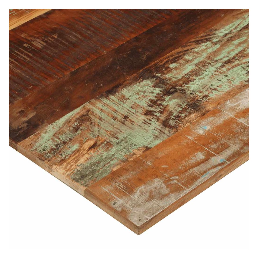 Ce dessus en bois, avec un look simple et épuré, ajoute un charme rustique à vos espaces intérieurs. Sa construction en bois massif le rend stable et sécurisé. Le dessus de table de remplacement, fabriqué en bois massif de récupération tropical, est fabriqué à partir de bois récupéré provenant d'anciennes structures telles que des entrepôts, des granges, des remises, des usines et des manoirs. Le bois est un mélange de bois de manguier, de bois franc, de teck, etc., avec les caractéristiques de différents bois. Les signes d'usure et la structure de grain visible donnent à chaque pièce sa propre histoire et un look unique. Chaque étape du processus est réalisée avec un soin exceptionnel, qu'il s'agisse du polissage, de la peinture ou du laquage. De plus, ce dessus de table en bois massif peut être utilisé pour les tables basses, les tables d'appoint, les tables de bar, les tables pour téléphone, les tables consoles, les tables de chevet, les étagères ou comme planche de meubles. Vous pouvez également combiner ce dessus de table avec n'importe quel pied stylisé selon vos besoins spécifiques. Le dessus de table est facile à nettoyer avec un chiffon humide. Remarque importante : les couleurs varient d'une pièce à l'autre, rendant chaque pièce unique. La livraison est aléatoire, garantissant l'exclusivité et l'individualité de votre produit.
