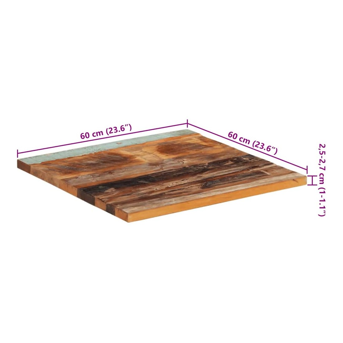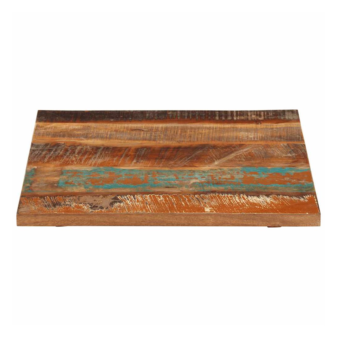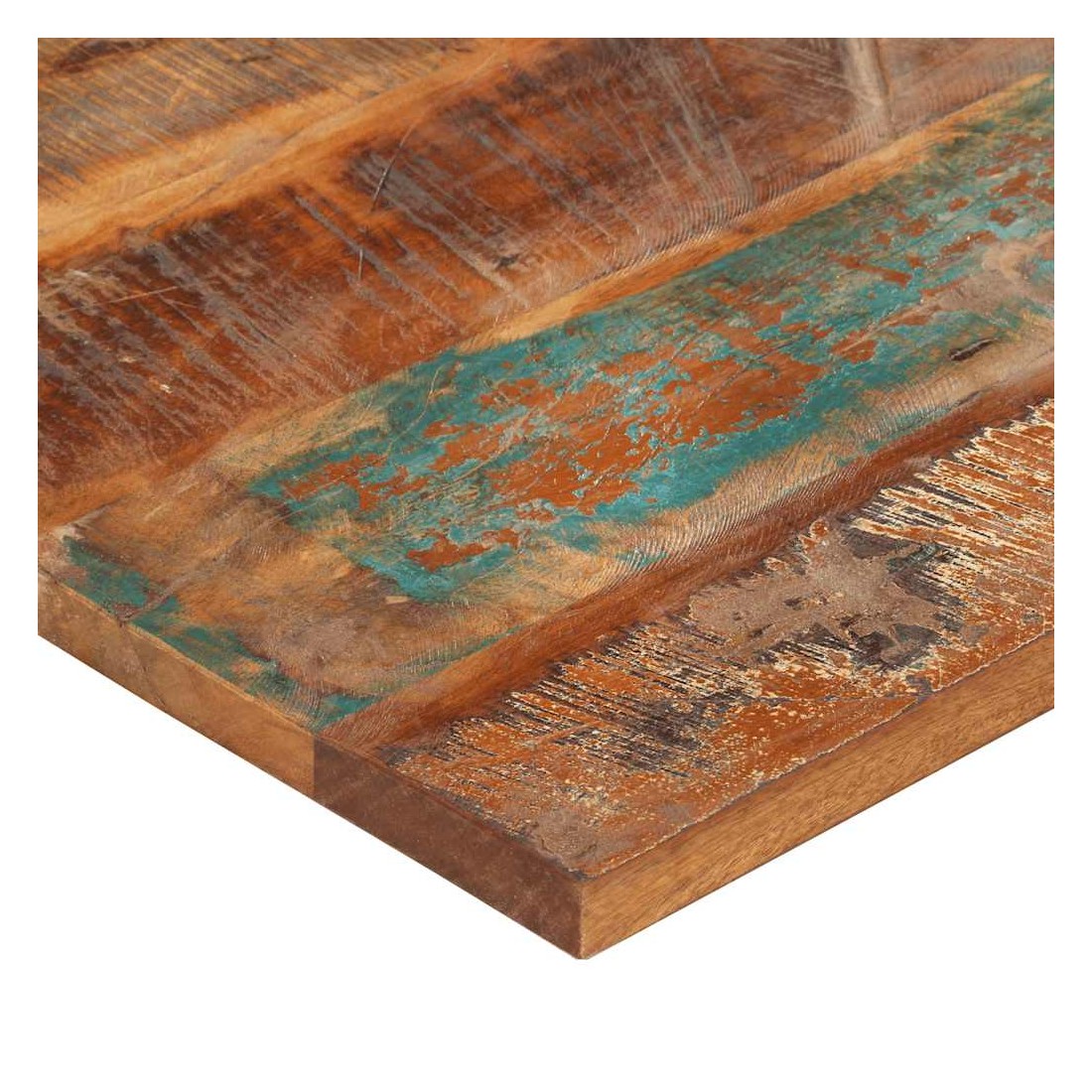 Ce dessus en bois, avec un look simple et épuré, ajoute un charme rustique à vos espaces intérieurs. Sa construction en bois massif le rend stable et sécurisé. Le dessus de table de remplacement, fabriqué en bois massif de récupération tropical, est fabriqué à partir de bois récupéré provenant d'anciennes structures telles que des entrepôts, des granges, des remises, des usines et des manoirs. Le bois est un mélange de bois de manguier, de bois franc, de teck, etc., avec les caractéristiques de différents bois. Les signes d'usure et la structure de grain visible donnent à chaque pièce sa propre histoire et un look unique. Chaque étape du processus est réalisée avec un soin exceptionnel, qu'il s'agisse du polissage, de la peinture ou du laquage. De plus, ce dessus de table en bois massif peut être utilisé pour les tables basses, les tables d'appoint, les tables de bar, les tables pour téléphone, les tables consoles, les tables de chevet, les étagères ou comme planche de meubles. Vous pouvez également combiner ce dessus de table avec n'importe quel pied stylisé selon vos besoins spécifiques. Le dessus de table est facile à nettoyer avec un chiffon humide. Remarque importante : les couleurs varient d'une pièce à l'autre, rendant chaque pièce unique. La livraison est aléatoire, garantissant l'exclusivité et l'individualité de votre produit.