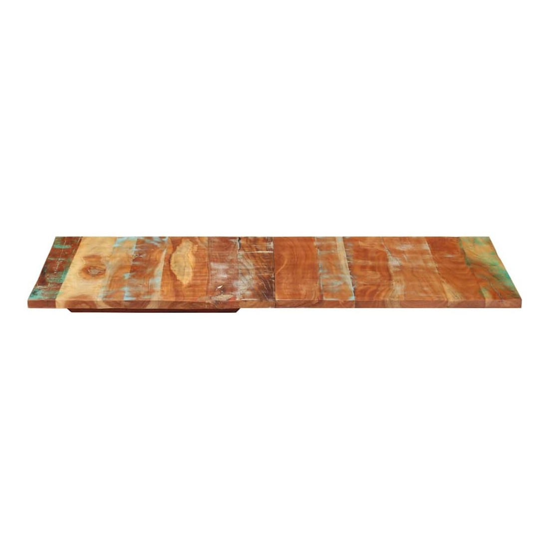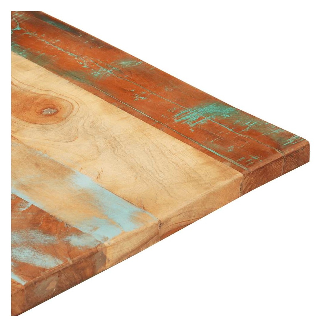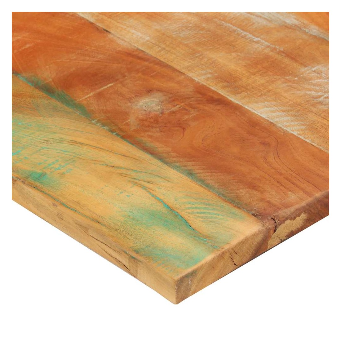 Ce dessus en bois, avec un look simple et épuré, ajoute un charme rustique à vos espaces intérieurs. Sa construction en bois massif le rend stable et sécurisé. Le dessus de table de remplacement, fabriqué en bois massif de récupération tropical, est fabriqué à partir de bois récupéré provenant d'anciennes structures telles que des entrepôts, des granges, des remises, des usines et des manoirs. Le bois est un mélange de bois de manguier, de bois franc, de teck, etc., avec les caractéristiques de différents bois. Les signes d'usure et la structure de grain visible donnent à chaque pièce sa propre histoire et un look unique. Chaque étape du processus est réalisée avec un soin exceptionnel, qu'il s'agisse du polissage, de la peinture ou du laquage. De plus, ce dessus de table en bois massi