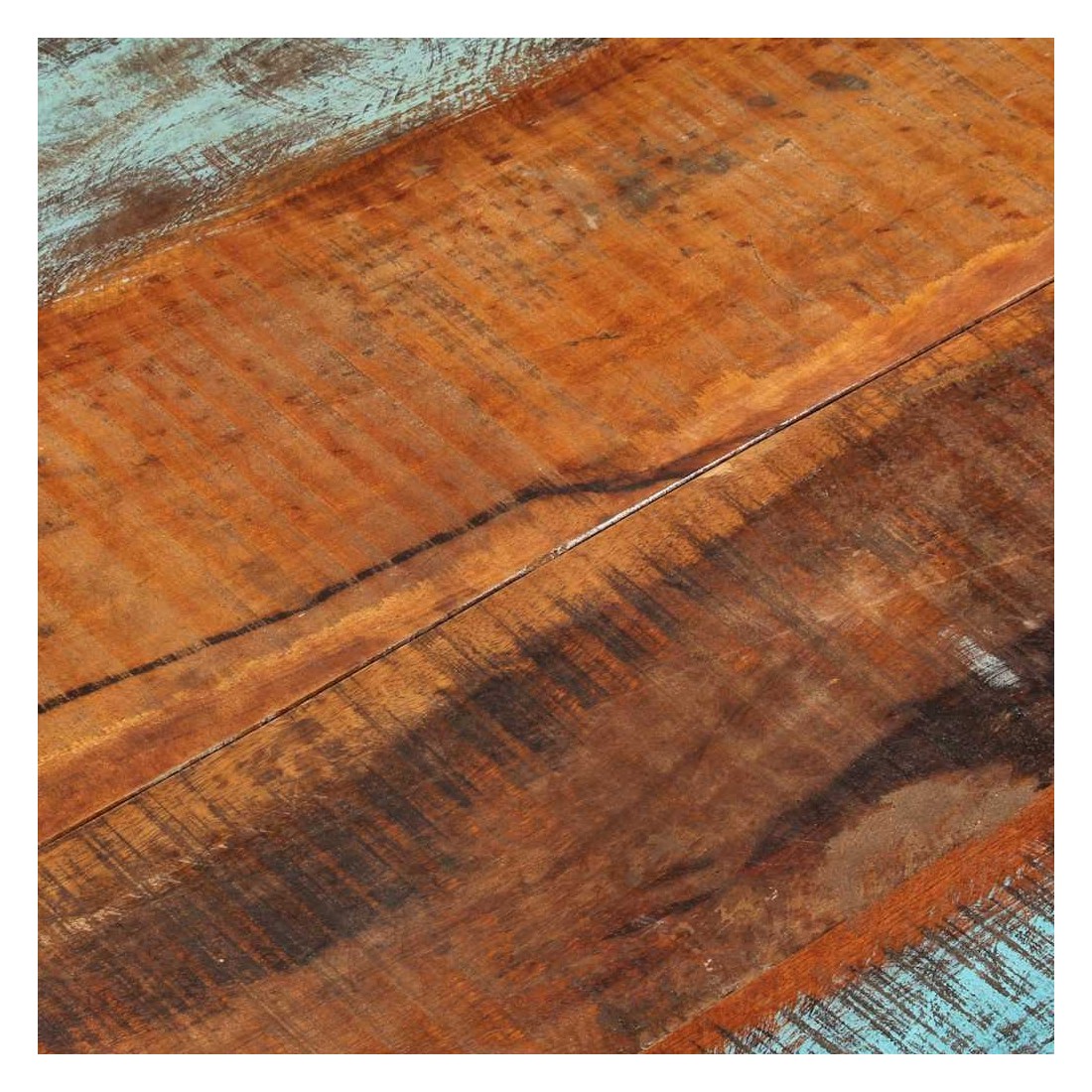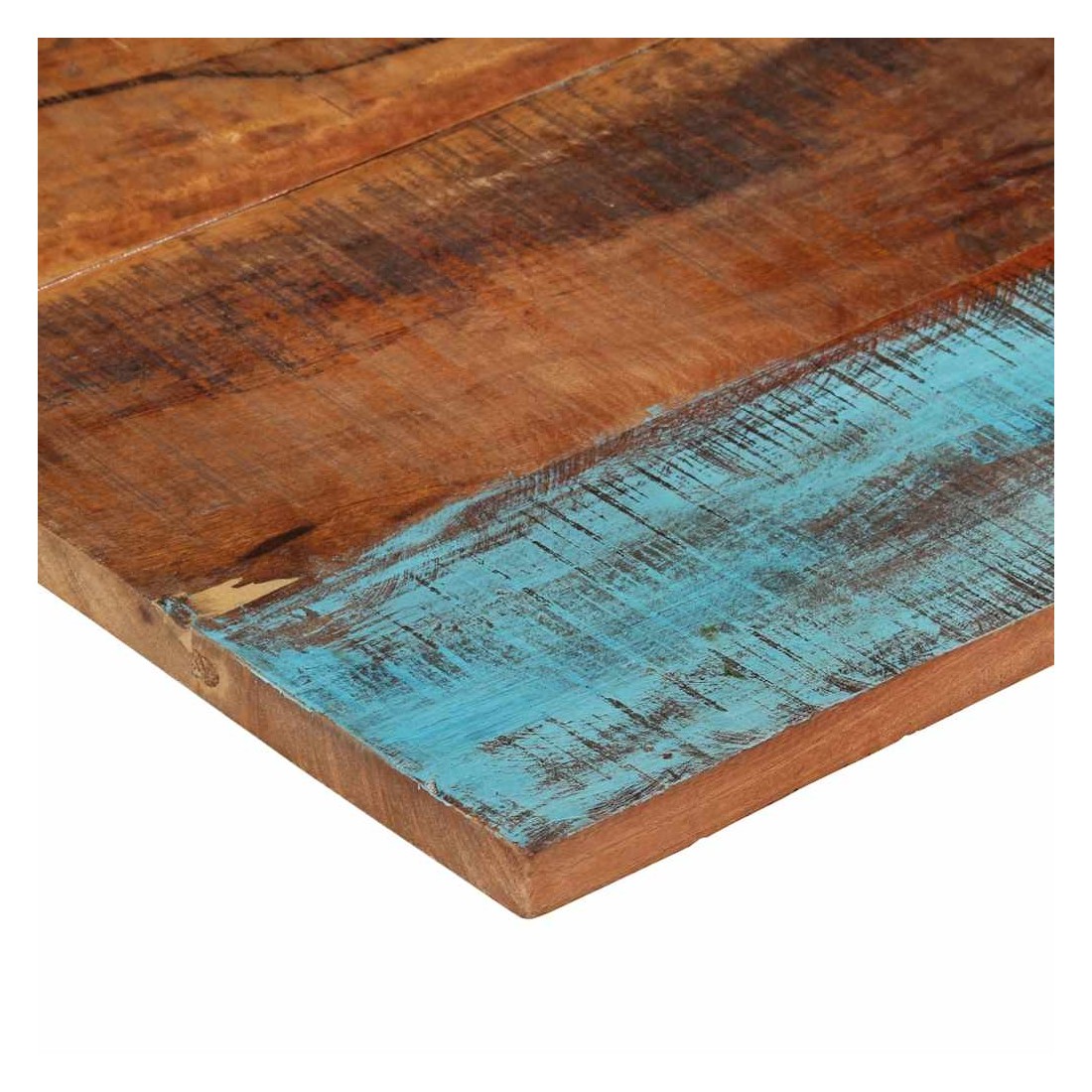 Ce dessus en bois, avec un look simple et épuré, ajoute un charme rustique à vos espaces intérieurs. Sa construction en bois massif le rend stable et sécurisé. Le dessus de table de remplacement, fabriqué en bois massif de récupération tropical, est fabriqué à partir de bois récupéré provenant d'anciennes structures telles que des entrepôts, des granges, des remises, des usines et des manoirs. Le bois est un mélange de bois de manguier, de bois franc, de teck, etc., avec les caractéristiques de différents bois. Les signes d'usure et la structure de grain visible donnent à chaque pièce sa propre histoire et un look unique. Chaque étape du processus est réalisée avec un soin exceptionnel, qu'il s'agisse du polissage, de la peinture ou du laquage. De plus, ce dessus de table en bois massi
