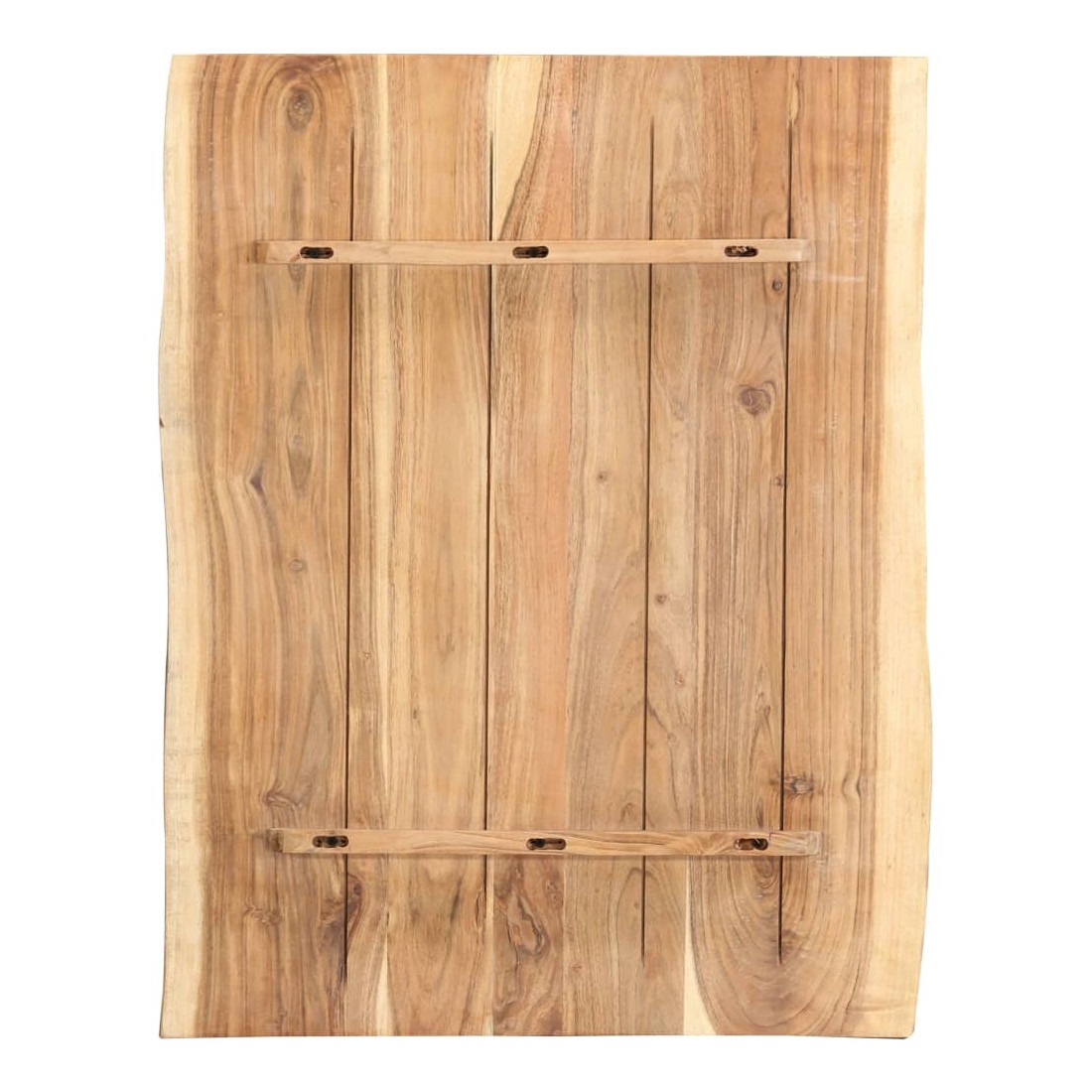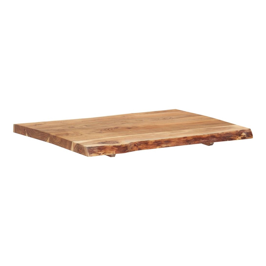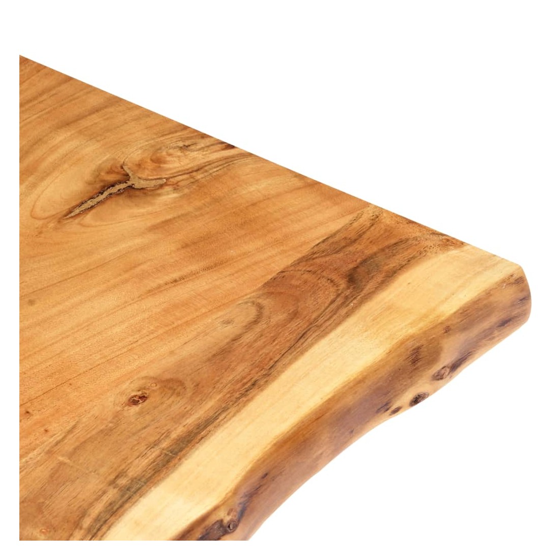 Ce dessus de table en bois d'une simplicité spectaculaire apporte style et fonctionnalité à vos tables existantes comme les tables de cuisine, les tables basses, les bureaux, etc. Ce dessus de table de cuisine est en acacia massif, un bois dur tropical, qui est dense, robuste et durable. Le bois d'acacia massif a été poli, peint et laqué pour le sceller et le protéger de l'humidité. Ce dessus de table de cuisine est fabriqué à partir d'un tronc d'arbre et comporte une bord en bois vivant, qui préserve la beauté du bois. Chacun de nos dessus de table est unique. Les veines et les bords du bois peuvent varier légèrement.