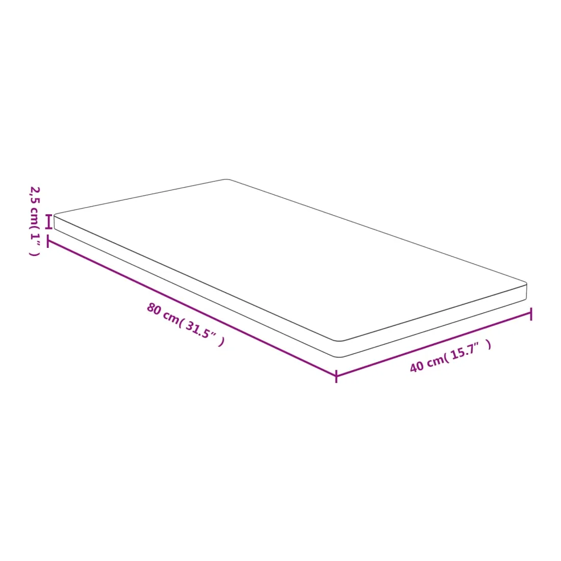 • Dimensions : 40 x 80 x 2,5 cm (L x l x é)