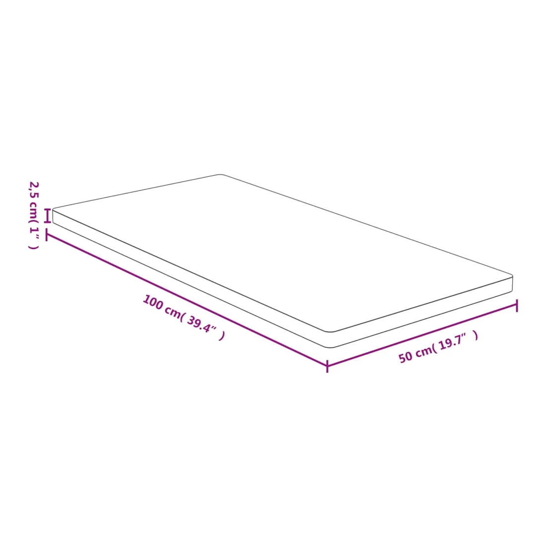 • Dimensions : 50 x 100 x 2,5 cm (L x l x é)