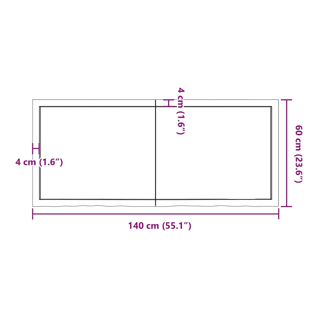 Dessus de table 140x60x(2-6) cm bois de chêne massif non traité