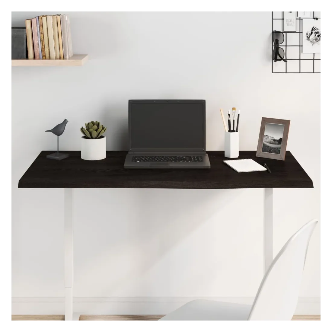 Donnez une nouvelle vie à votre table avec ce dessus de table en bois. C'est une excellente solution pour renouveler votre table à la maison ou dans un cadre commercial. Bois de chêne massif : le dessus de table est en bois de chêne massif, un matériau naturel d'une grande beauté. Le bois de chêne a une couleur marron moyen et un grain dense, ce qui contribue à son aspect unique.Applications polyvalentes : le dessus de table de remplacement peut être combiné avec différentes bases en fonction de vos besoins.Surface traitée : la planche de remplacement a été traitée avec une peinture foncée, elle est donc prête à l'emploi car une finition supplémentaire n'est pas nécessaire.Fabriqué à la main avec un bord vif : le tableau de bricolage est méticuleusement fabriqué à la main et présente un bord vivant qui ajoute à son charme naturel. Chaque pièce de l'étagère présente un caractère unique. La livraison est aléatoire, ce qui garantit l'exclusivité et l'individualité de votre produit. Bon à savoir :En tant que produit naturel, le bois peut présenter des nœuds et des imperfections que nous remplissons avec des garnitures noires pour garantir un aspect lisse.