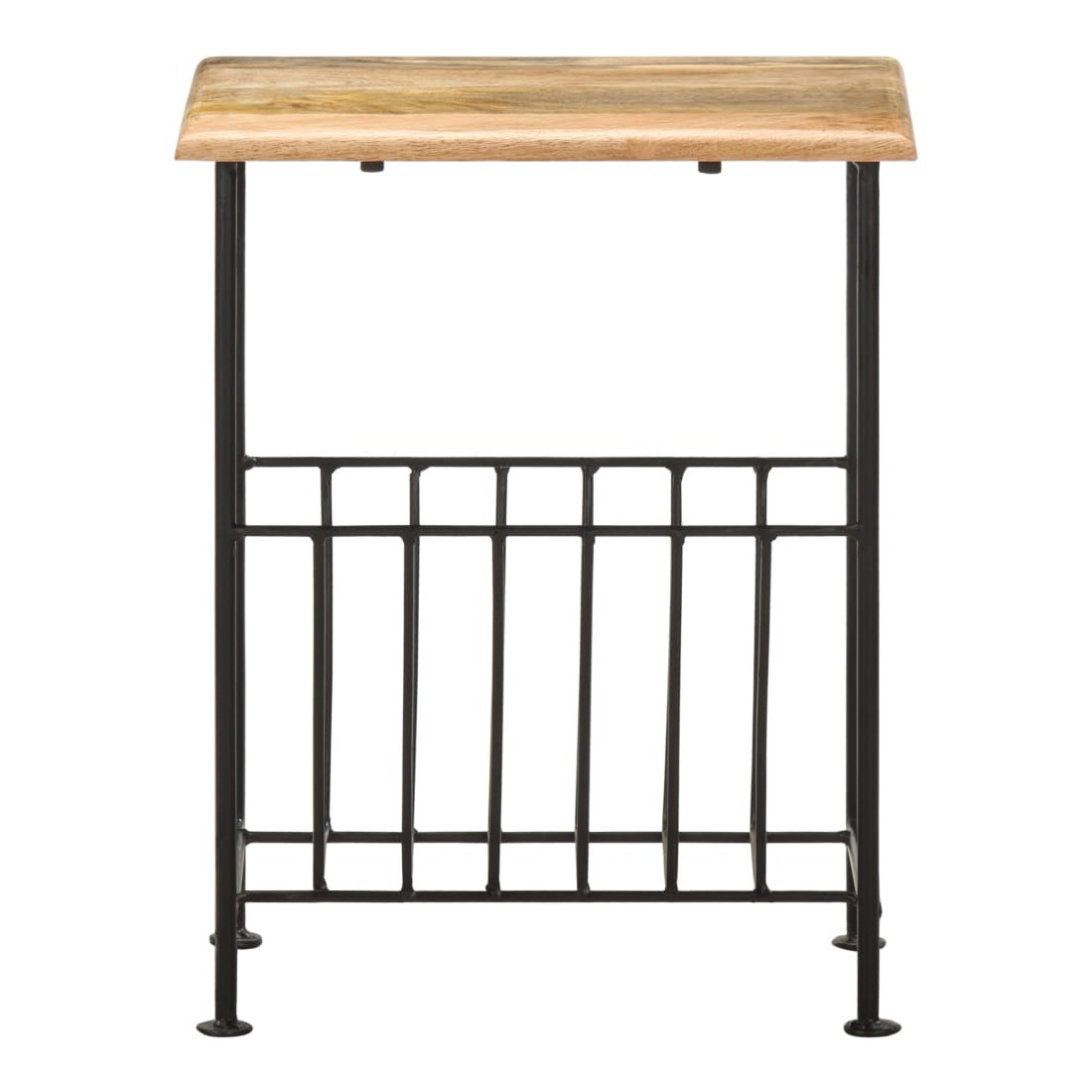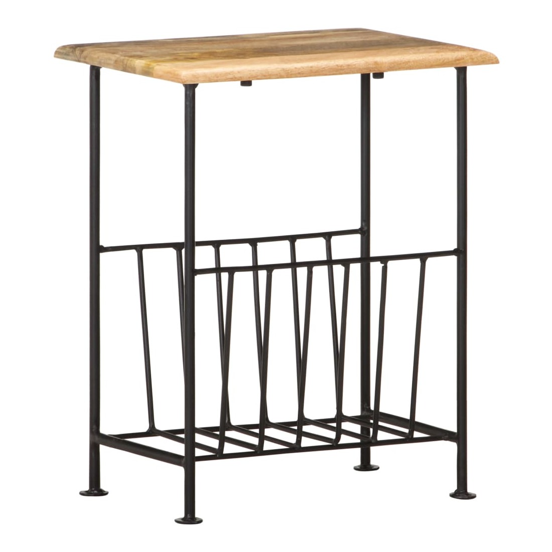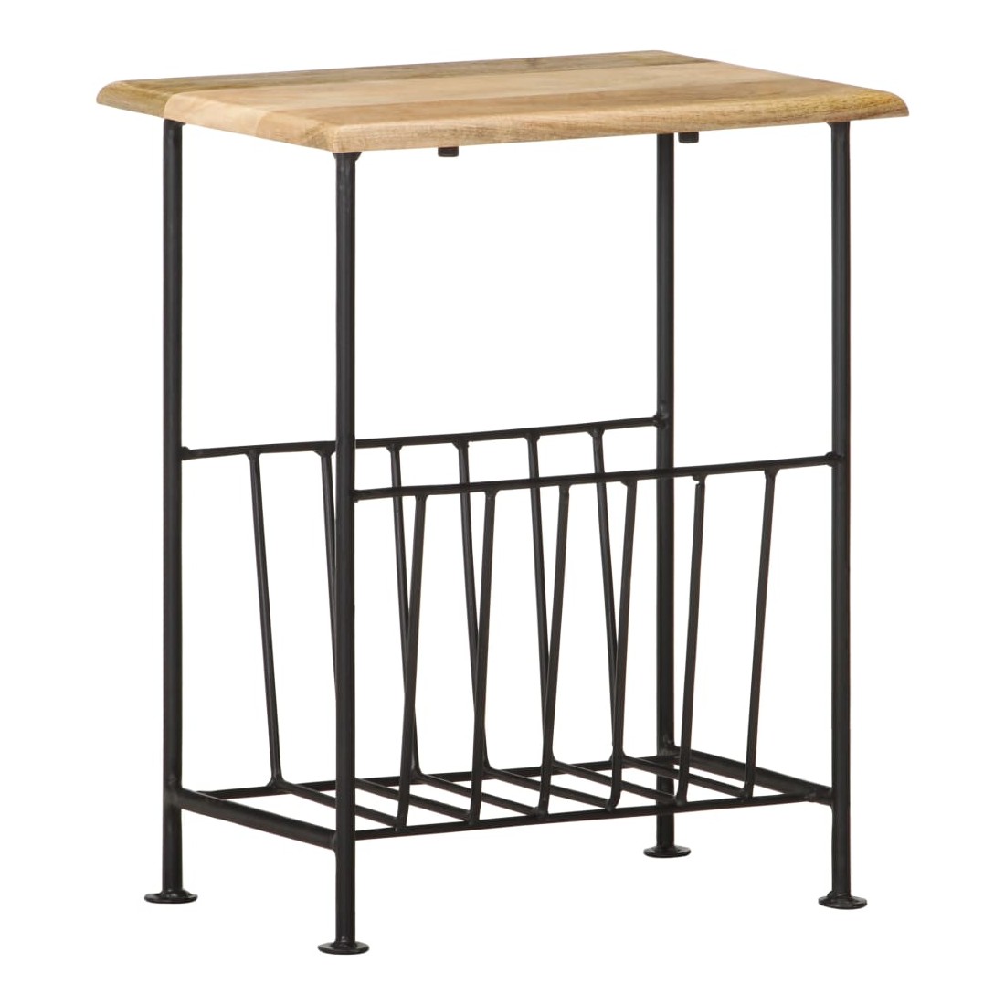 Ce porte-revues en bois vous permet de ranger vos magazines préférés et à portée de main. La table à revues est combinée avec le dessus de table en bois de manguier massif et la base en acier enduit de poudre, ce qui la rend robuste et stable. Le savoir-faire et les magnifiques veines du bois rendent chaque meuble unique et légèrement différent l'un de l'autre. De plus, ce support de rangement sert également de table d'appoint, de table de chevet et de table de salon. Le porte-revues est également facile à assembler. Remarque importante : les couleurs et les grains peuvent varier d'une pièce à l'autre, rendant chaque pièce unique. La livraison est aléatoire, ce qui garantit l'exclusivité et l'individualité de votre produit.